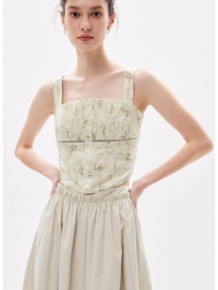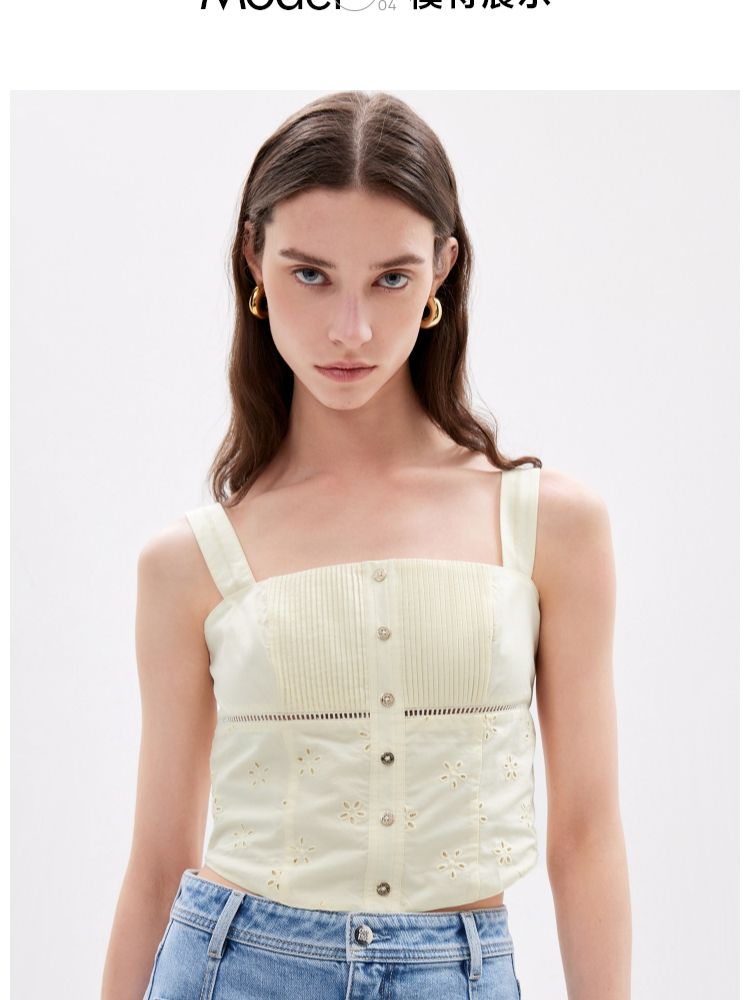 【少女感蕾丝】春季钩花方领吊带雪纺衫女 812186