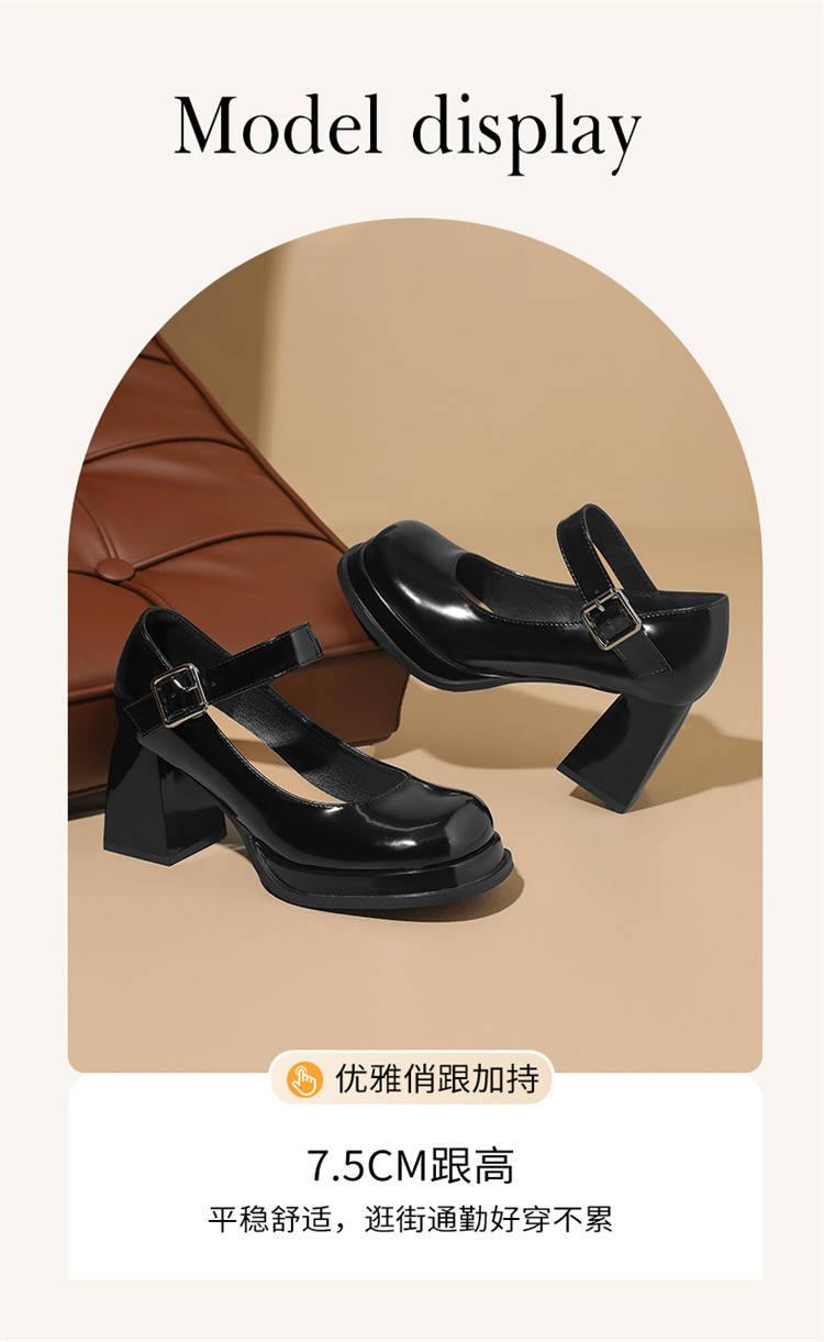 商品名称:【秒高7.5CM】夏季一字带女单鞋玛丽珍气质高跟鞋深口时装鞋 435479