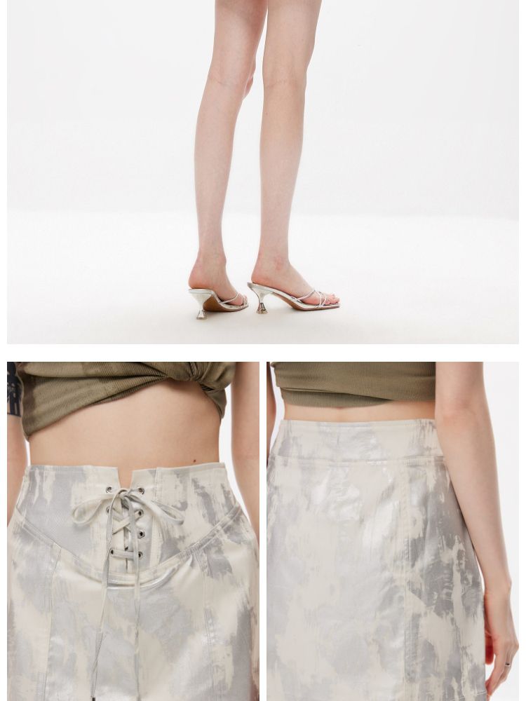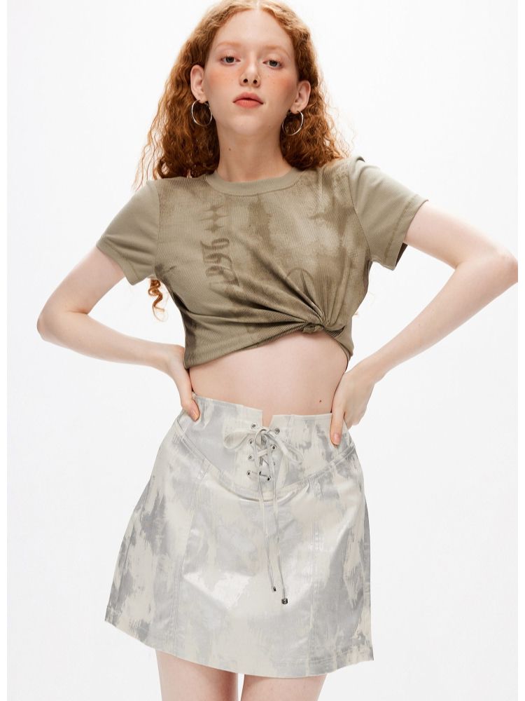 商品名称:【时尚辣妹】夏季含莱赛尔高腰A字绑带短裙半身裙女 510106