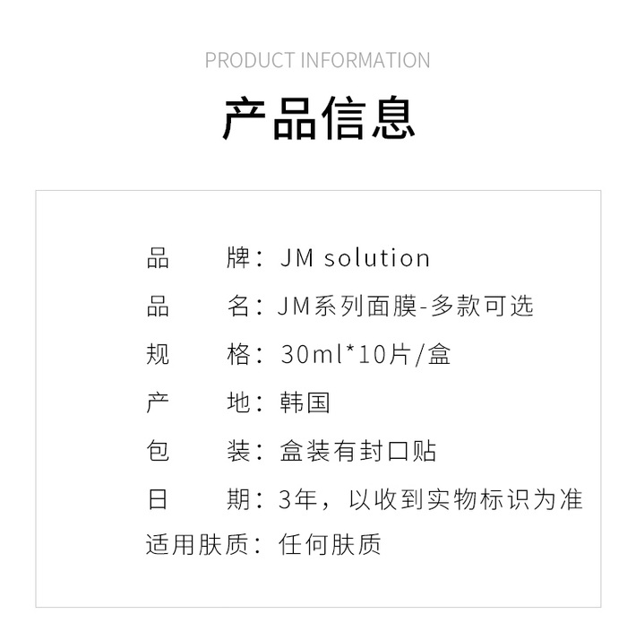 商品名称:JM 急救珍珠蜂蜜3款面膜组合装 快速补水修护肌肤