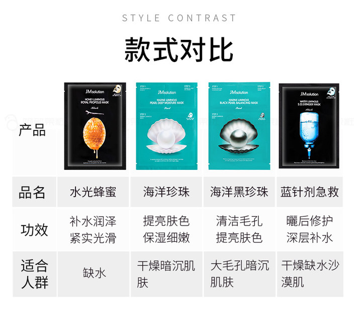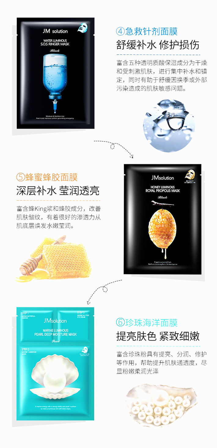 JM 急救珍珠蜂蜜3款面膜组合装 快速补水修护肌肤