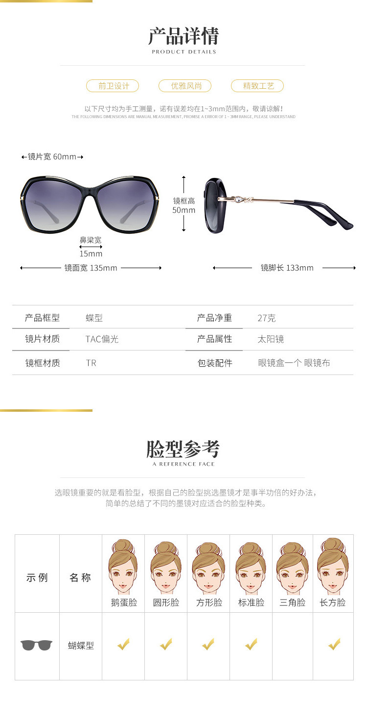 商品名称:海伦凯勒眼镜时尚大框墨镜女士偏光太阳镜 039643