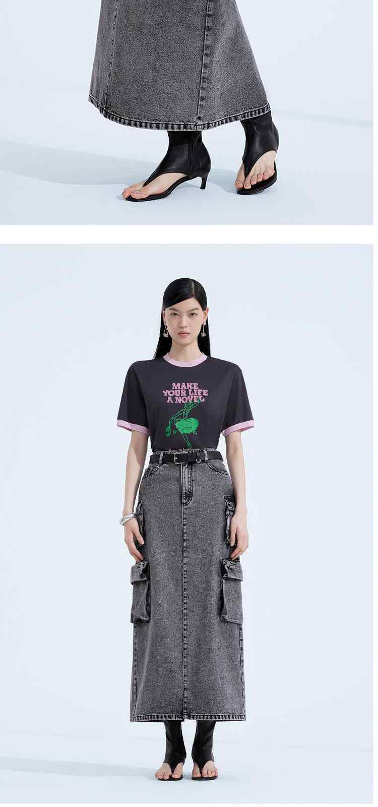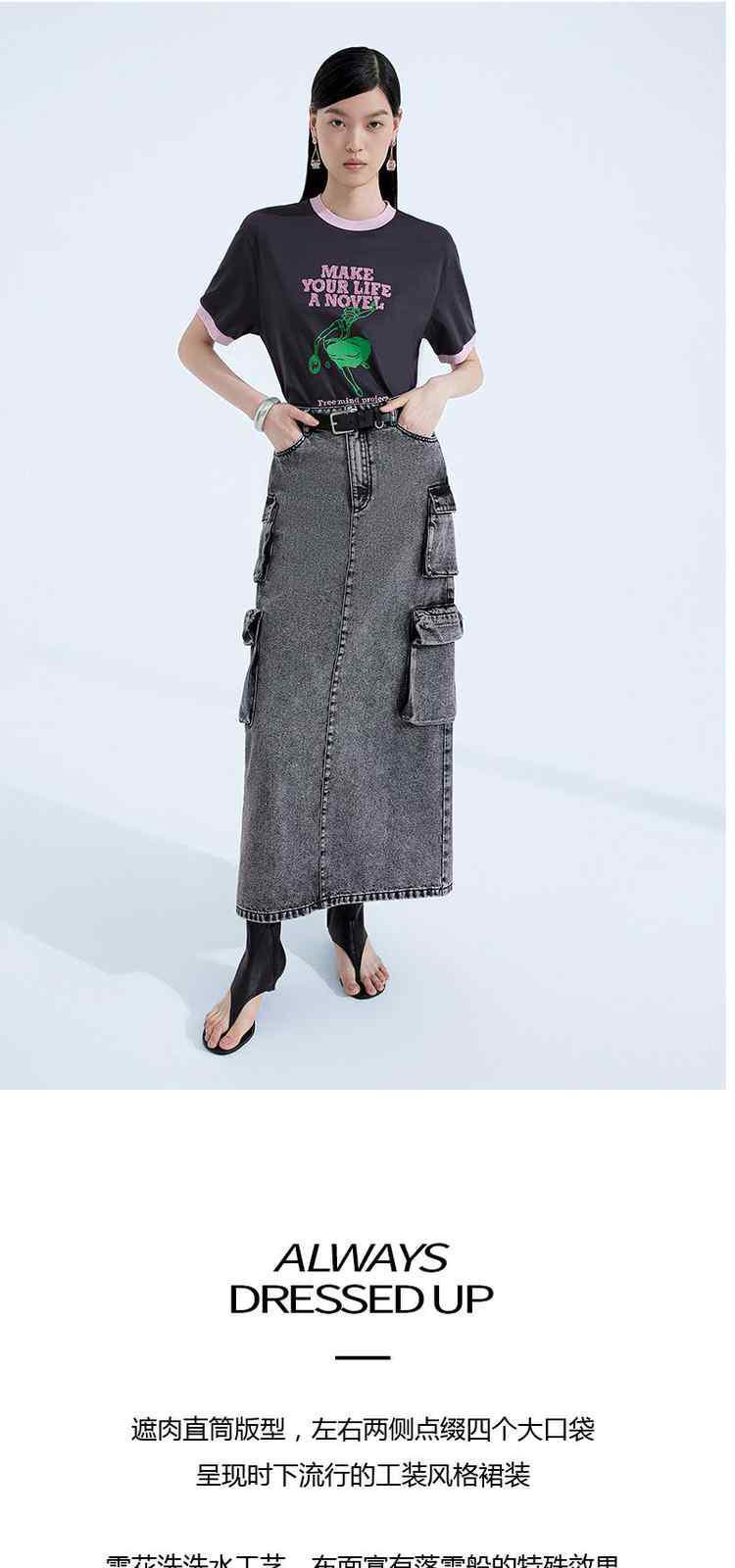 黑标系列 春装配腰带磨白洗水工装风牛仔半身裙 513615