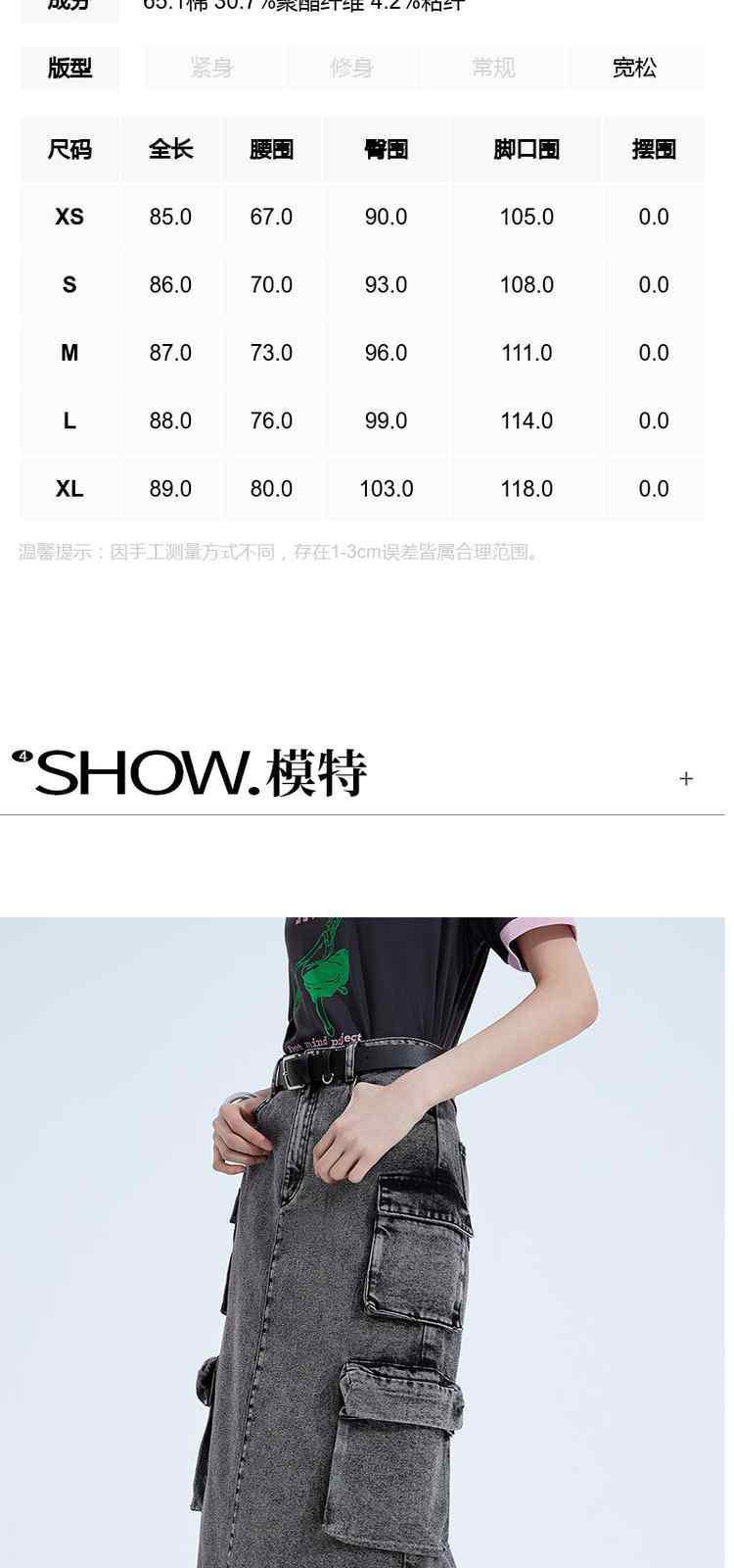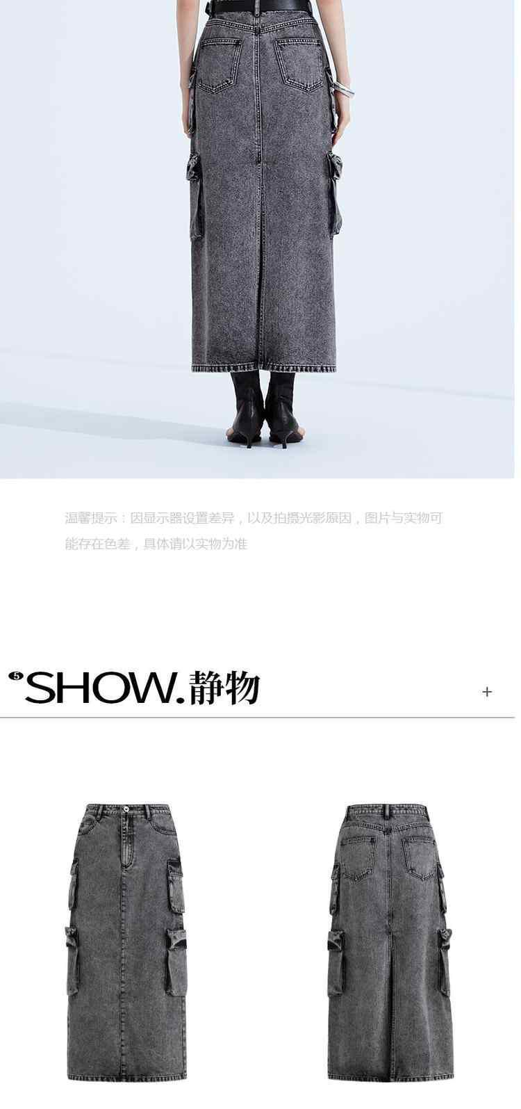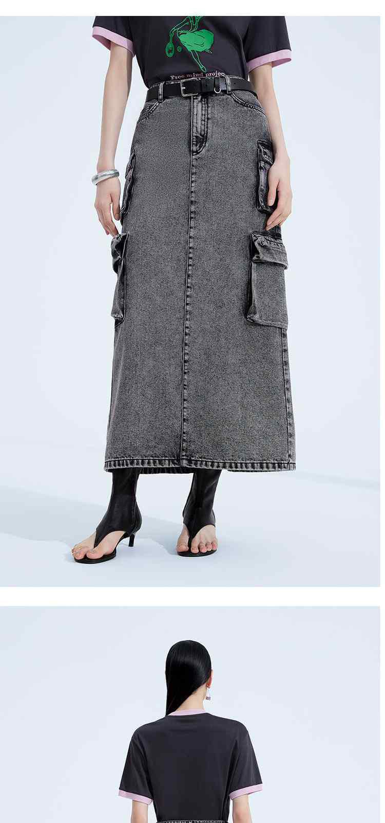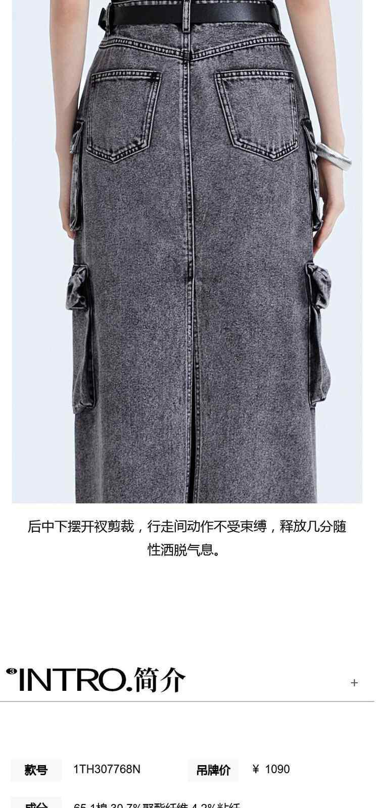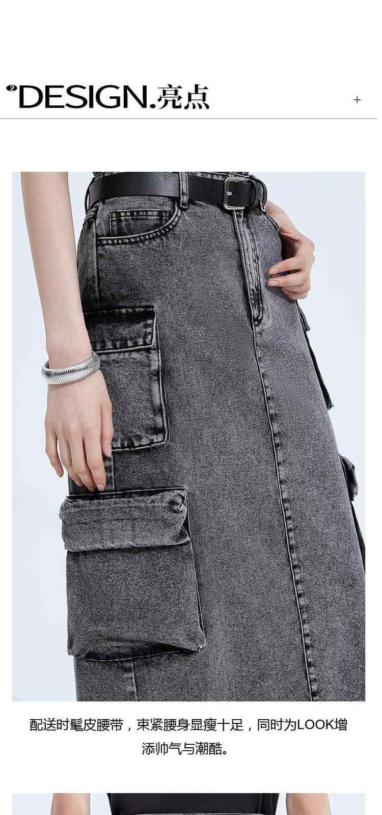 商品名称:黑标系列 春装配腰带磨白洗水工装风牛仔半身裙 513615