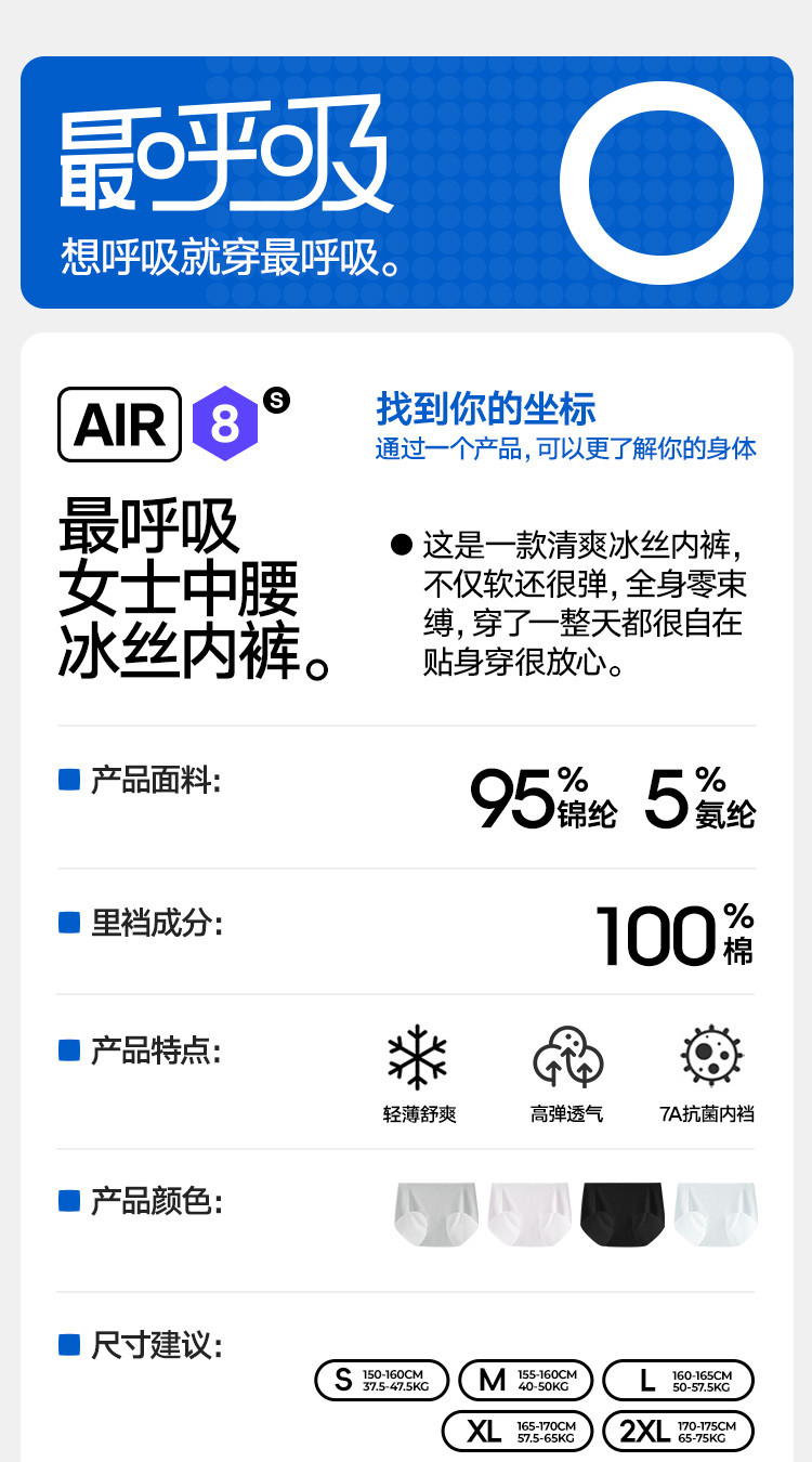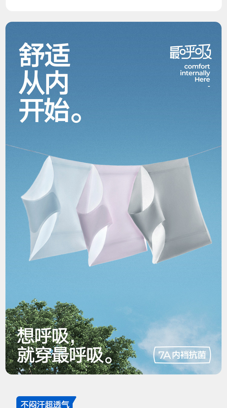 商品名称:【7A抑菌 无痕冰丝透气】3条装女士内裤夏季薄款中腰三角短裤 535706