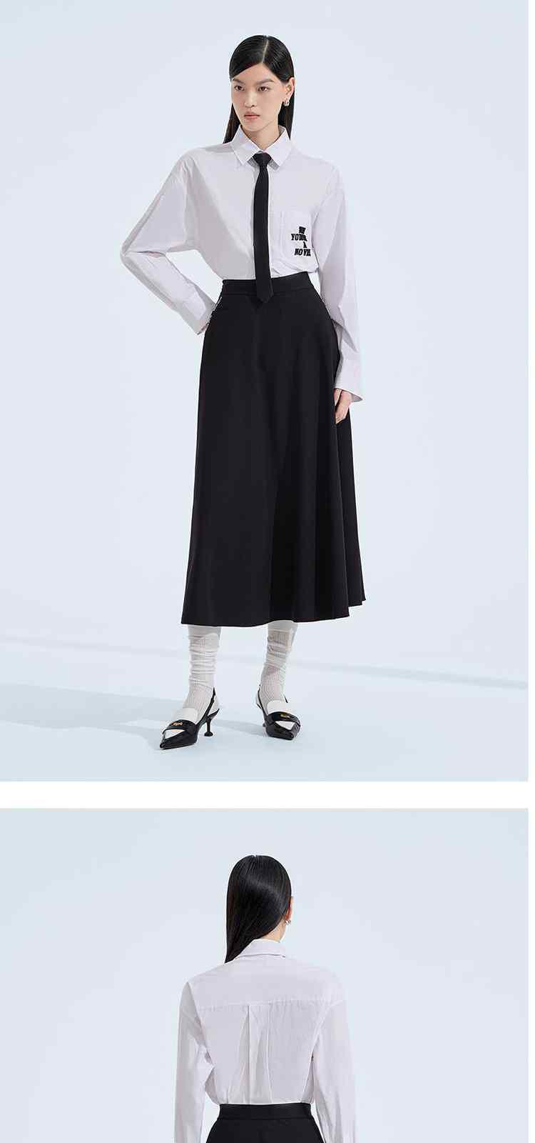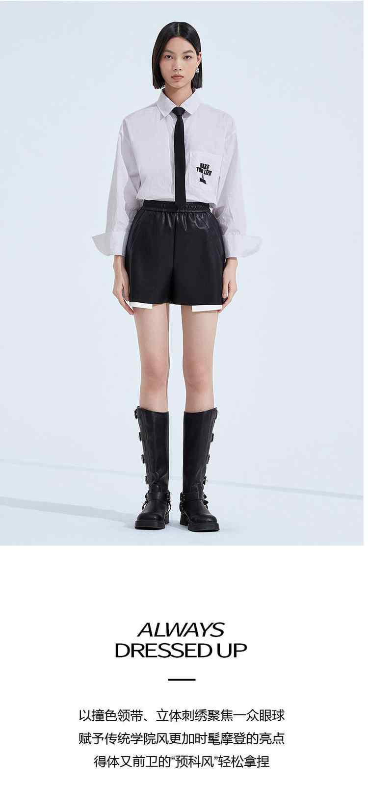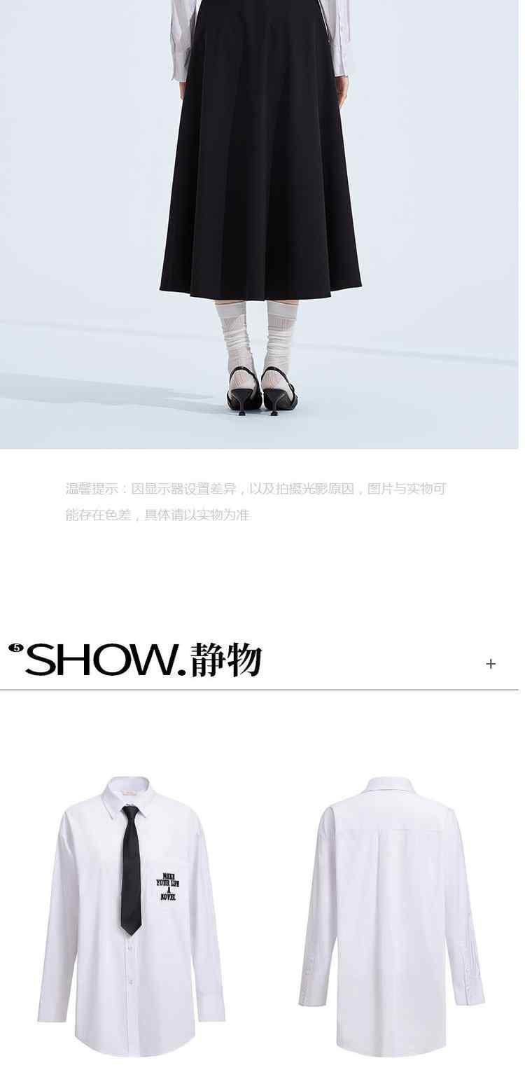 春装 领带刺绣学院风纯棉中长款衬衫女 558671