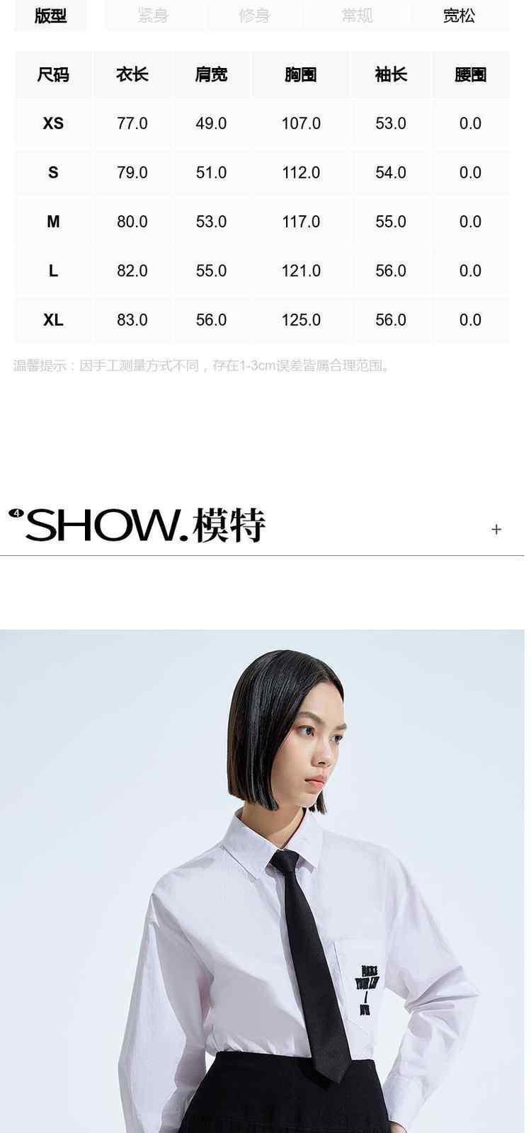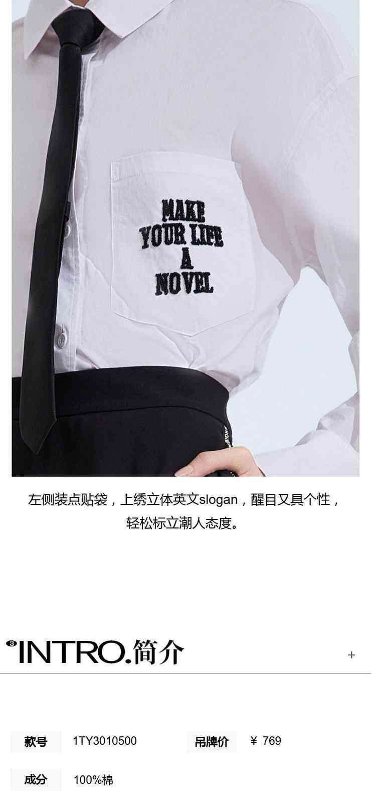 商品名称:春装 领带刺绣学院风纯棉中长款衬衫女 558671