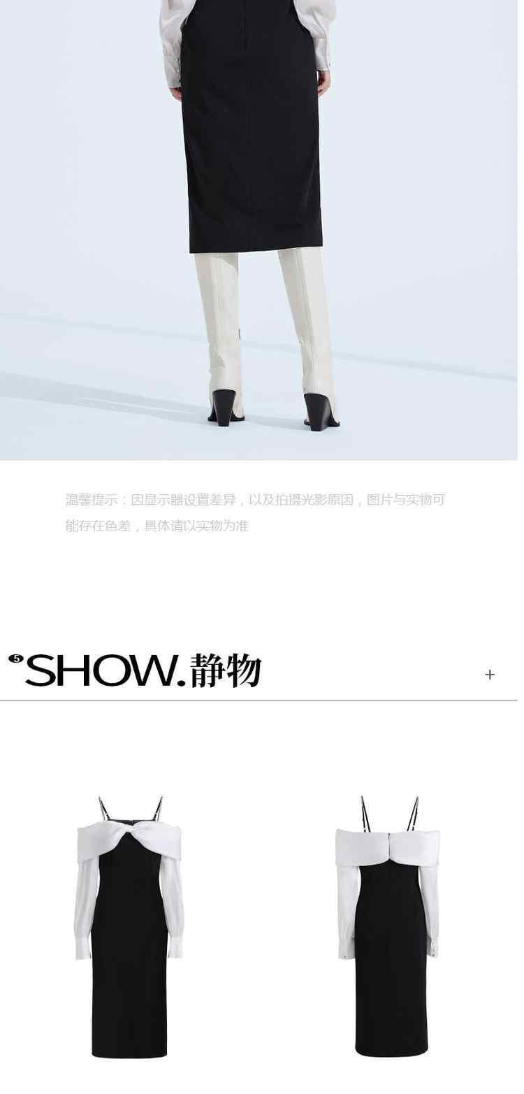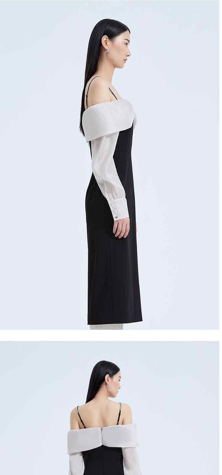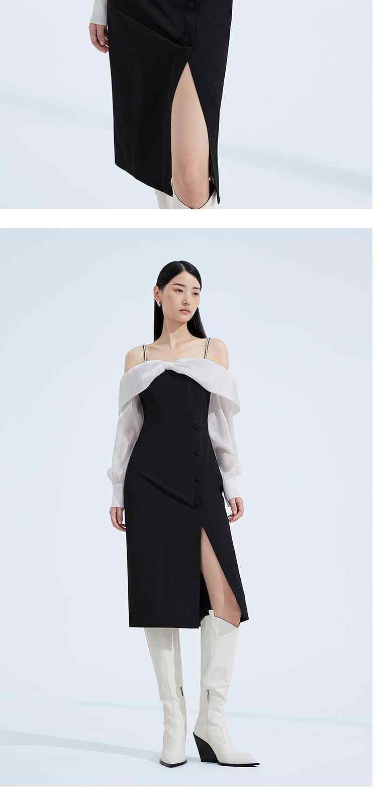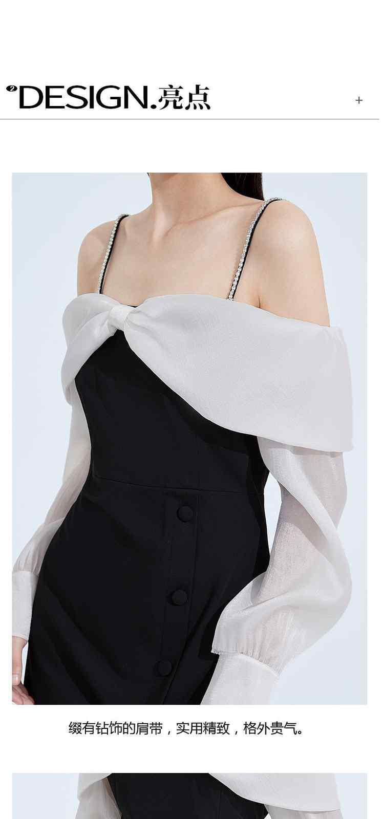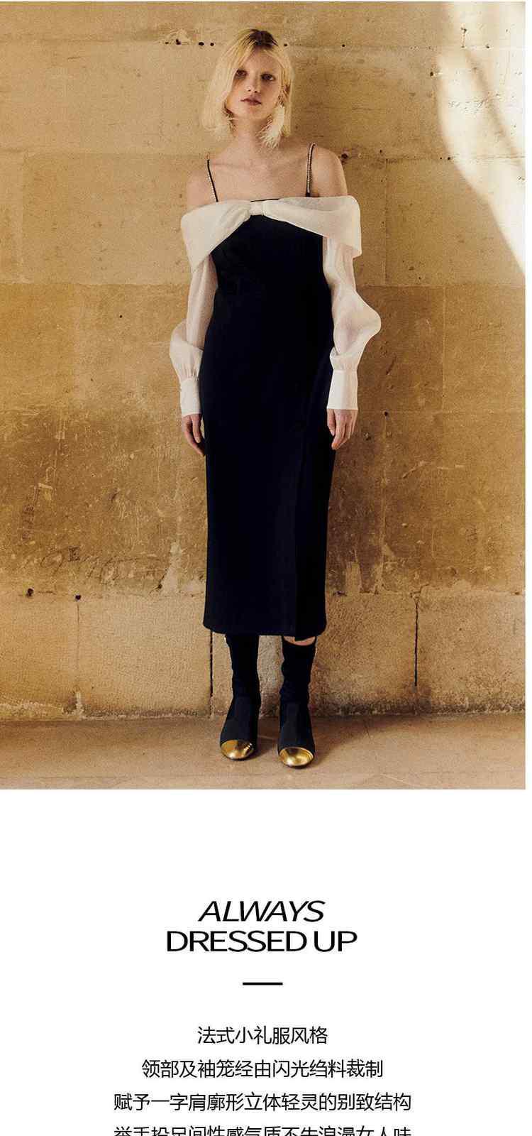 春装 钻链肩带法式礼服蝴蝶结一字领连衣裙 372623