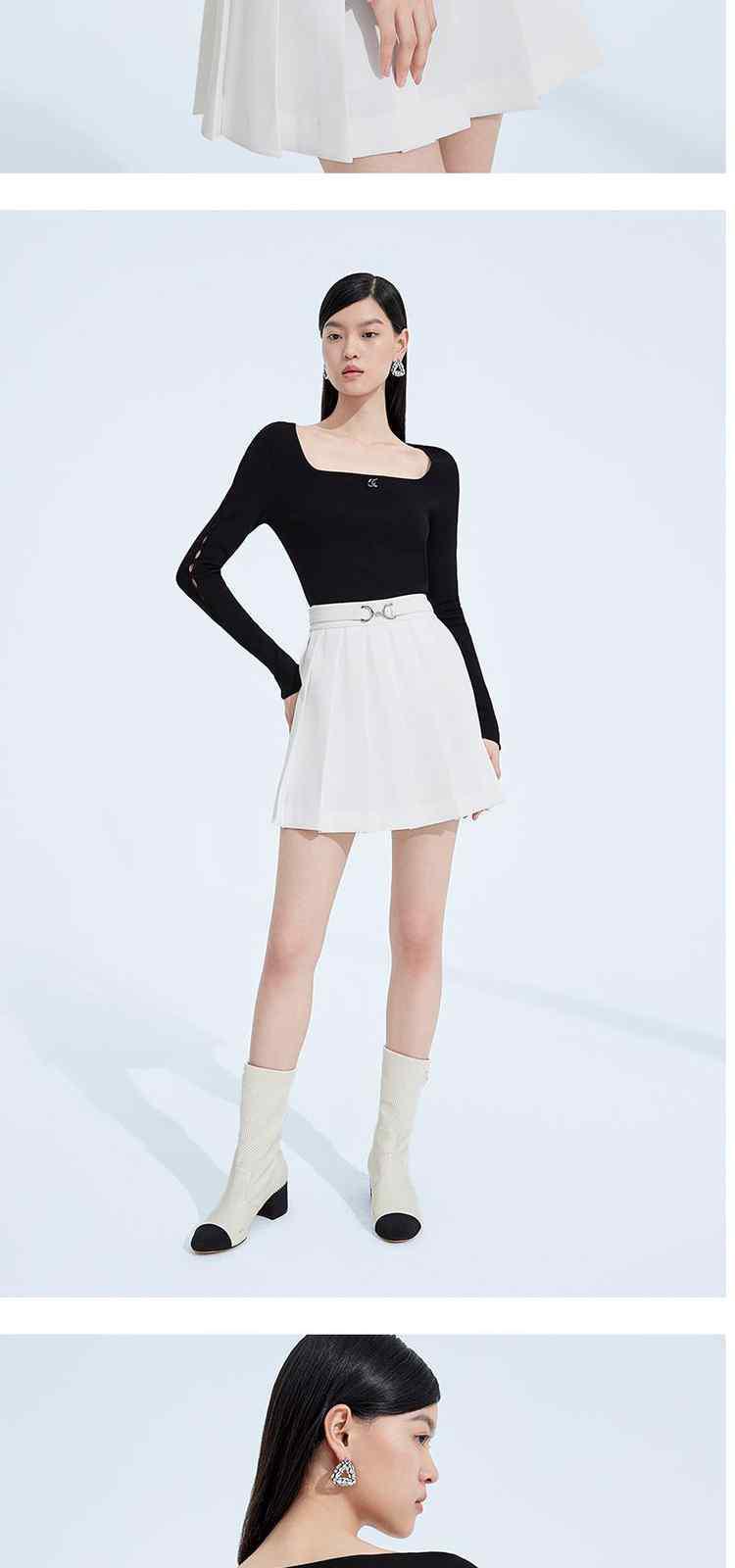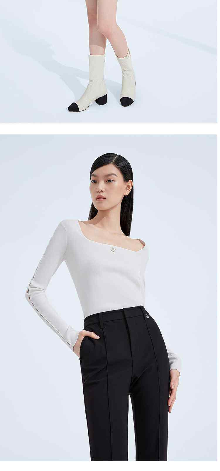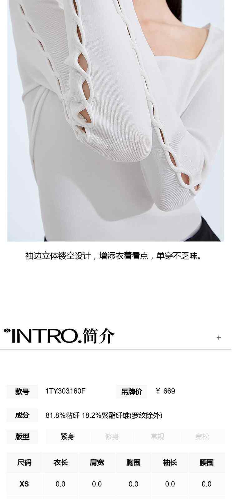 商品名称:春装 镂空显瘦短款修身U领法式针织衫女 664783