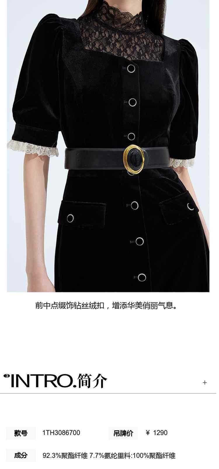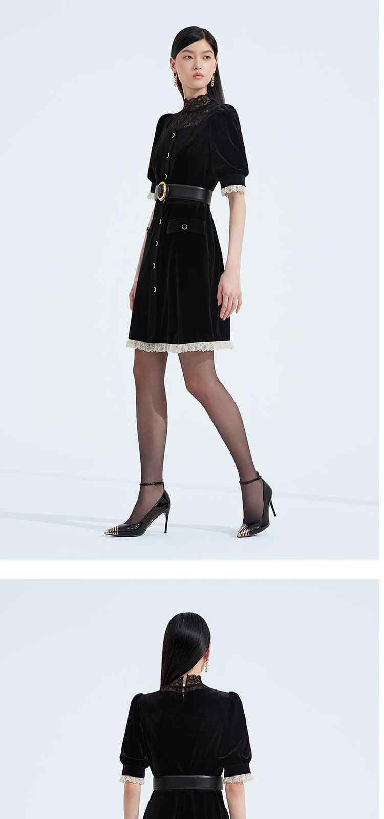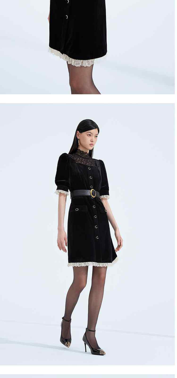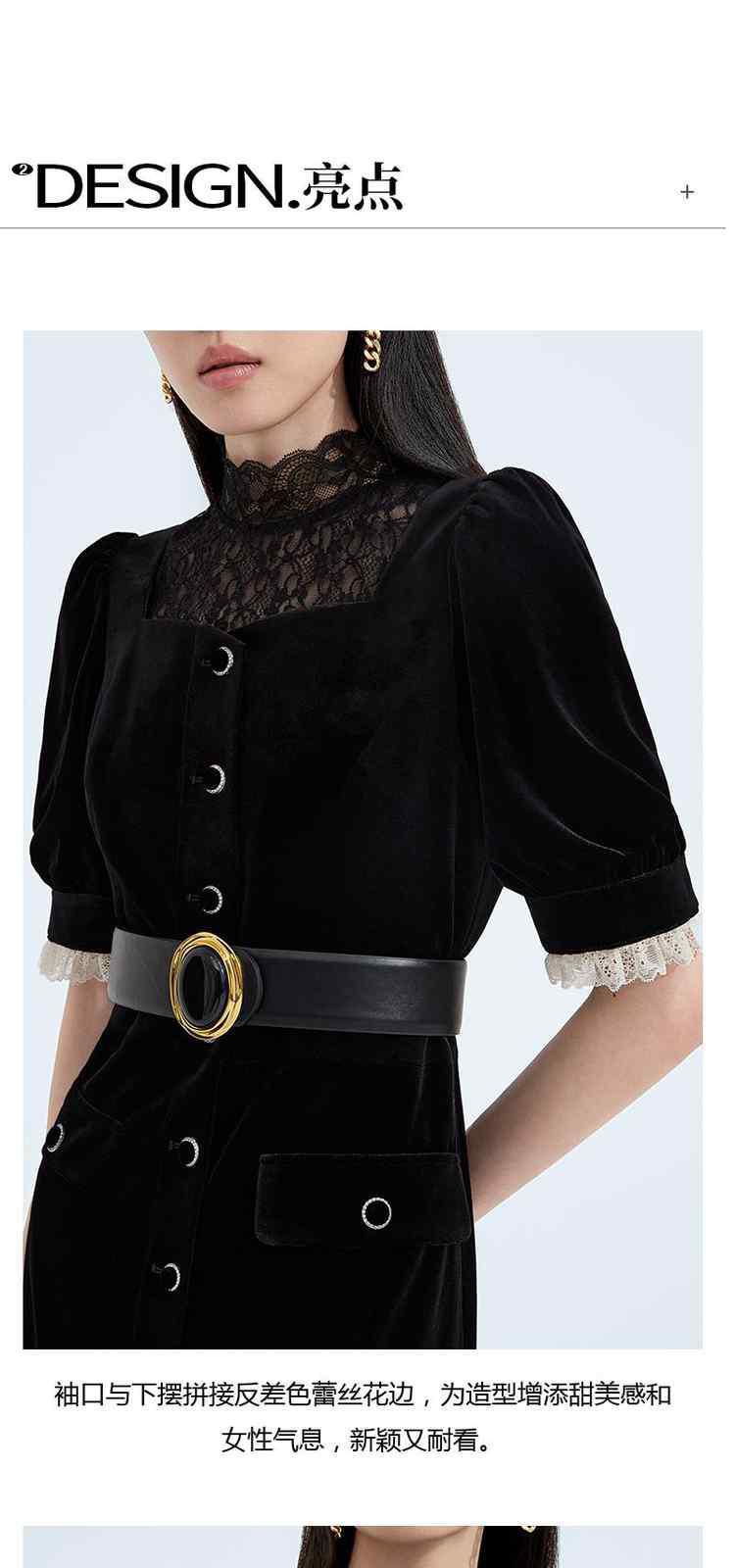 商品名称:黑标系列 夏装拼接法式宫廷风丝绒短袖连衣裙 895311