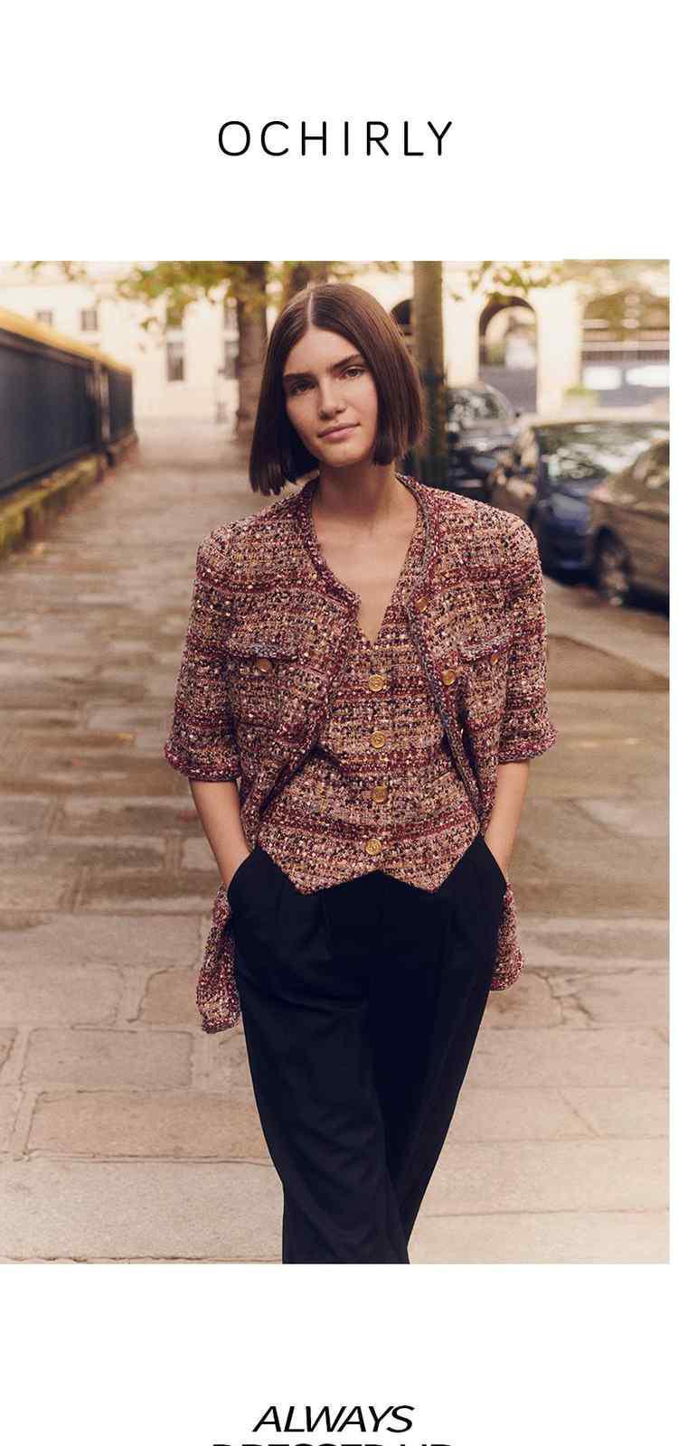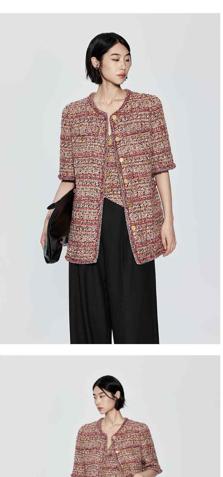 春装 设计感中长款珠片粗花呢小香风外套女 333967