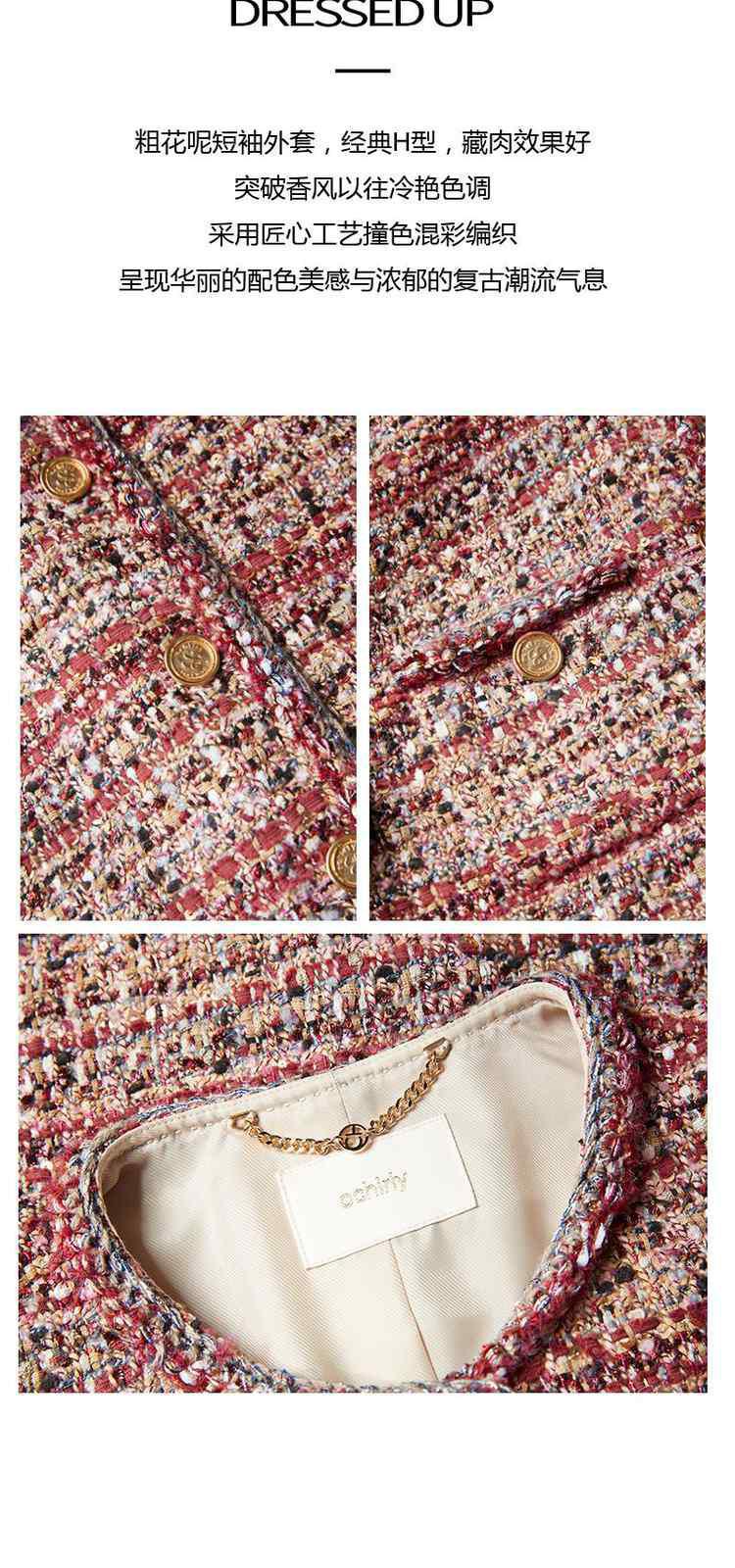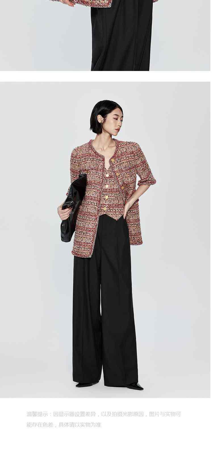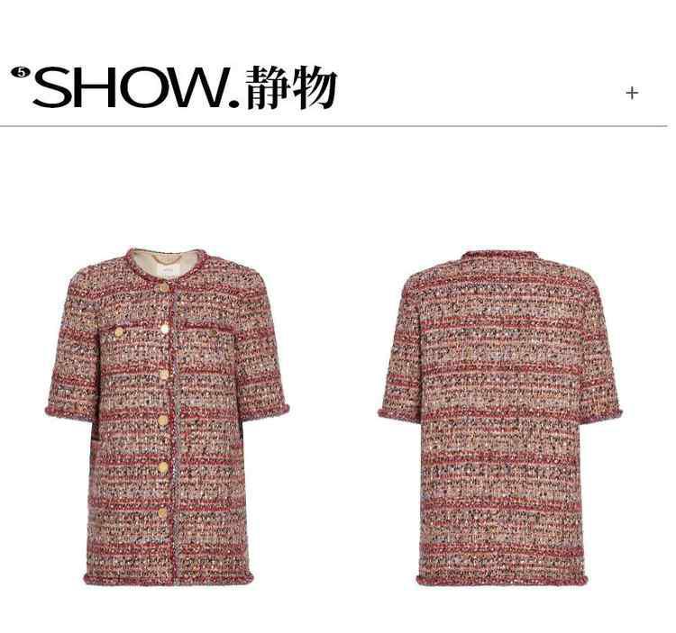 商品名称:春装 设计感中长款珠片粗花呢小香风外套女 333967