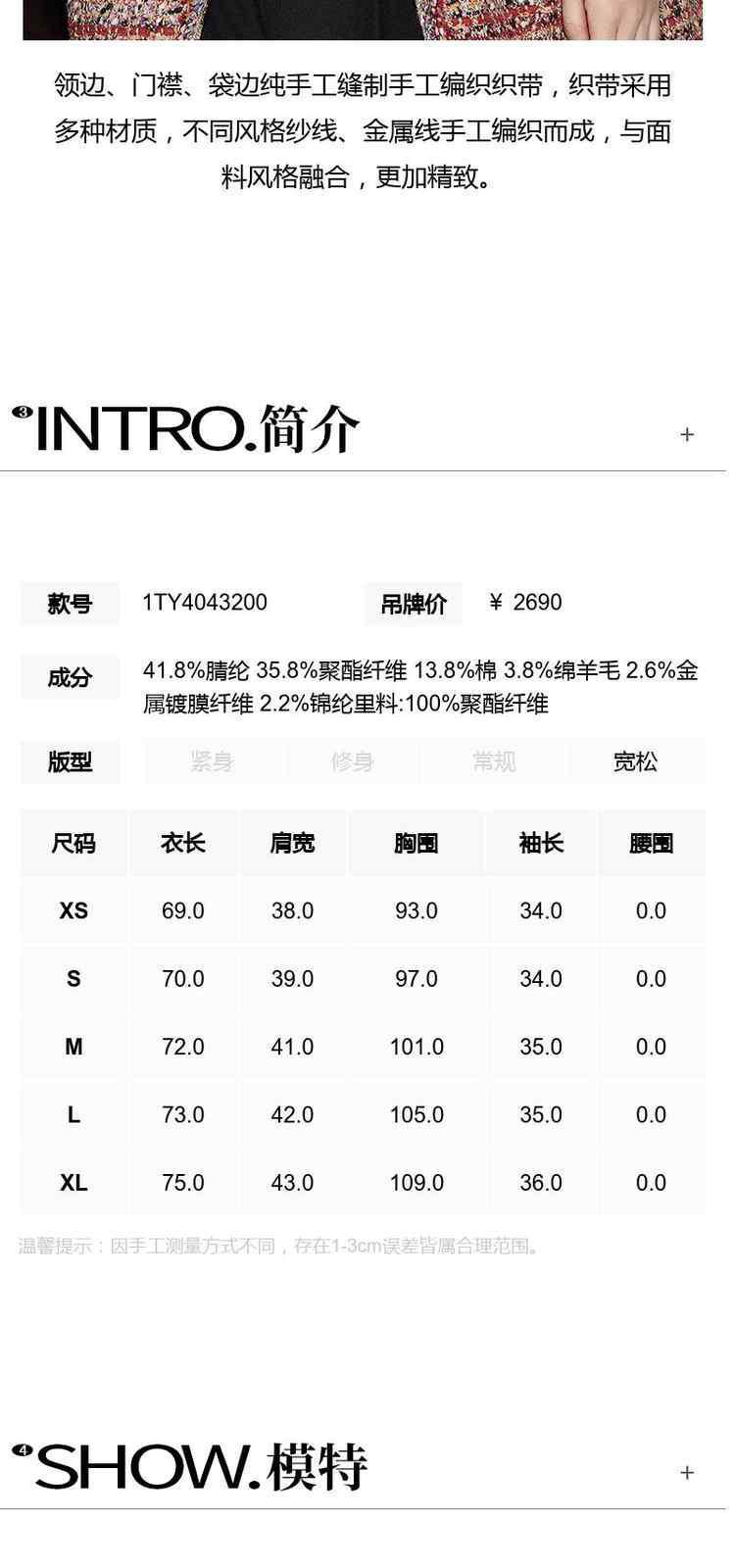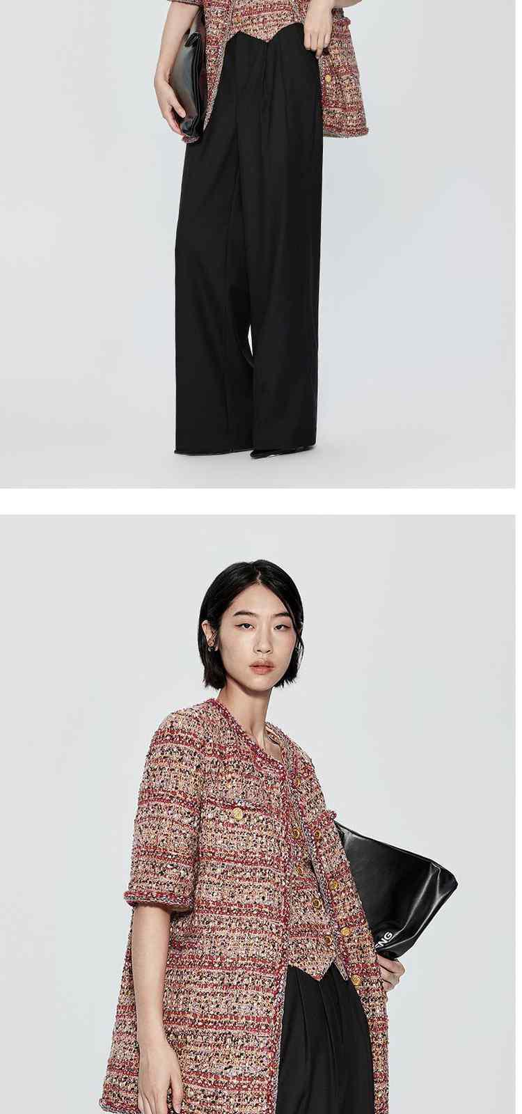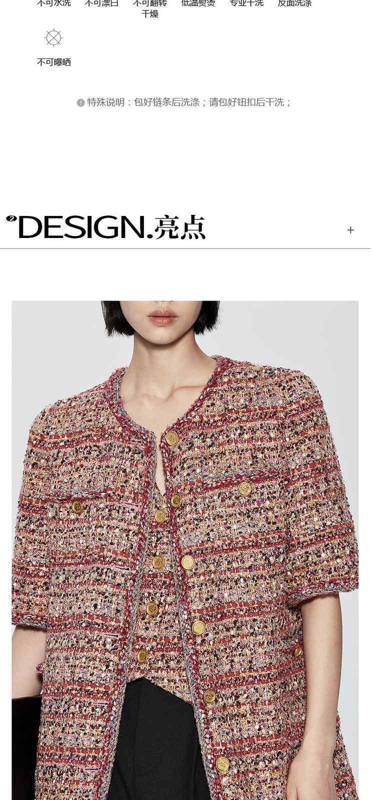 商品名称:春装 设计感中长款珠片粗花呢小香风外套女 333967