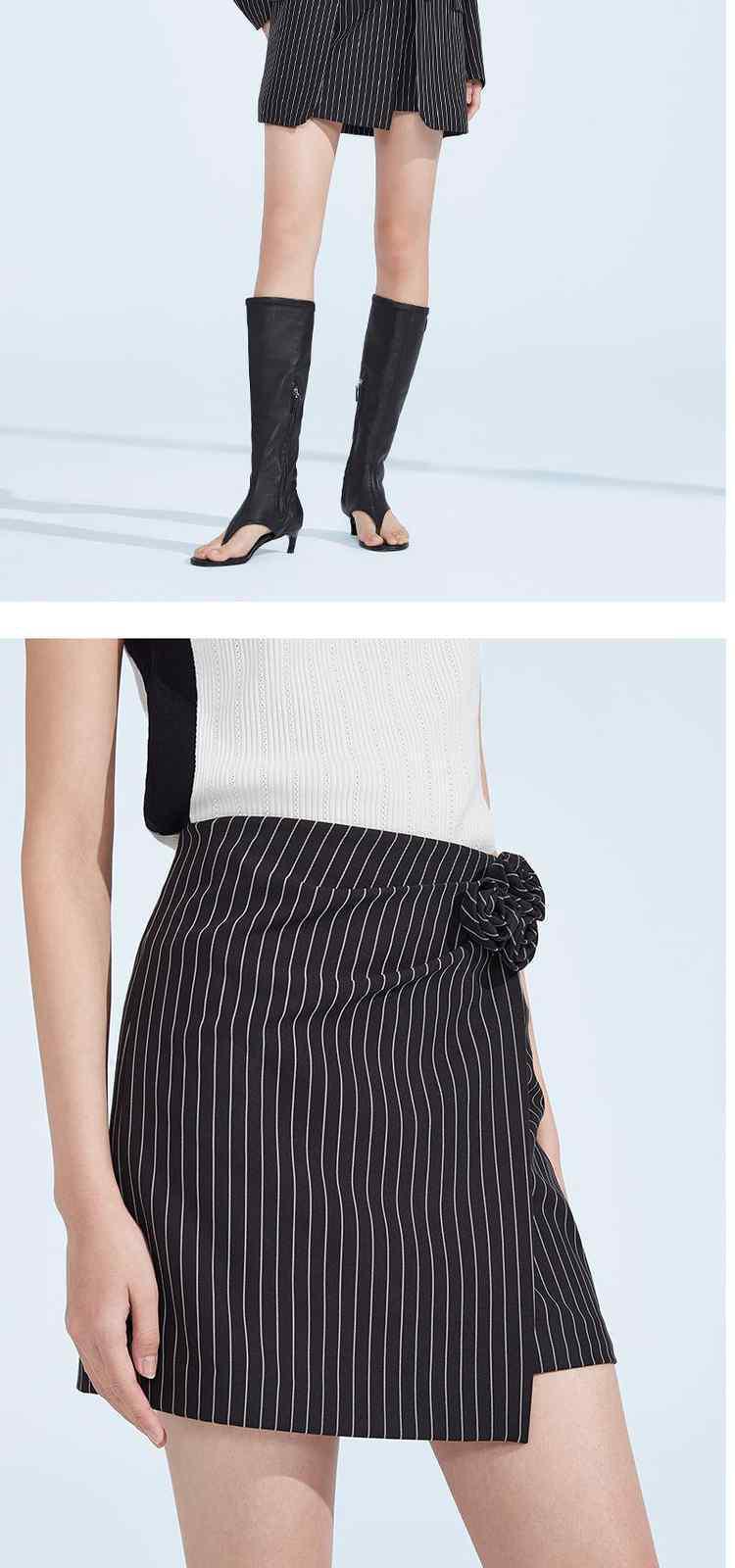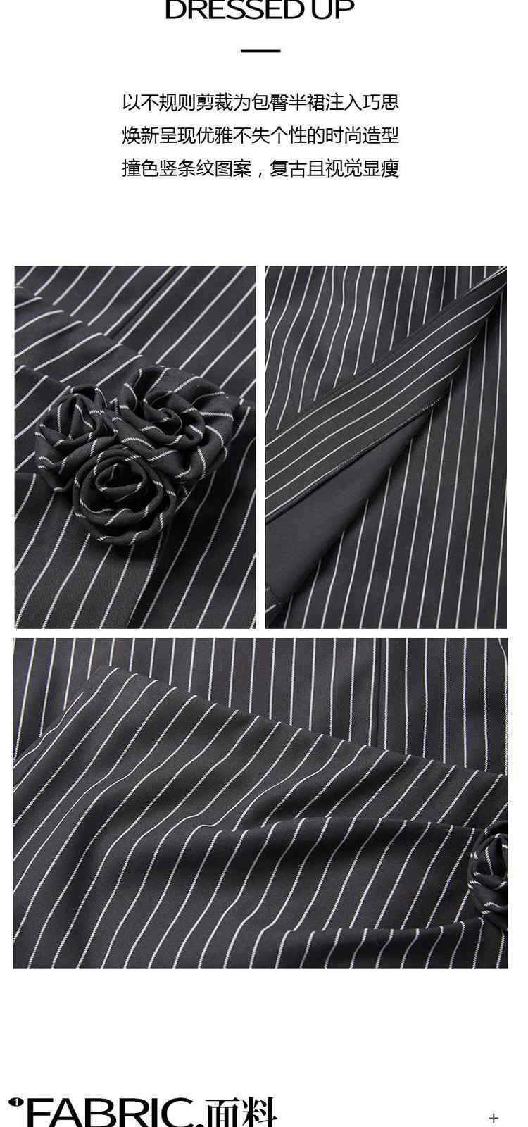 商品名称:春季 气质通勤包臀短裙褶花条纹半身裙 600079