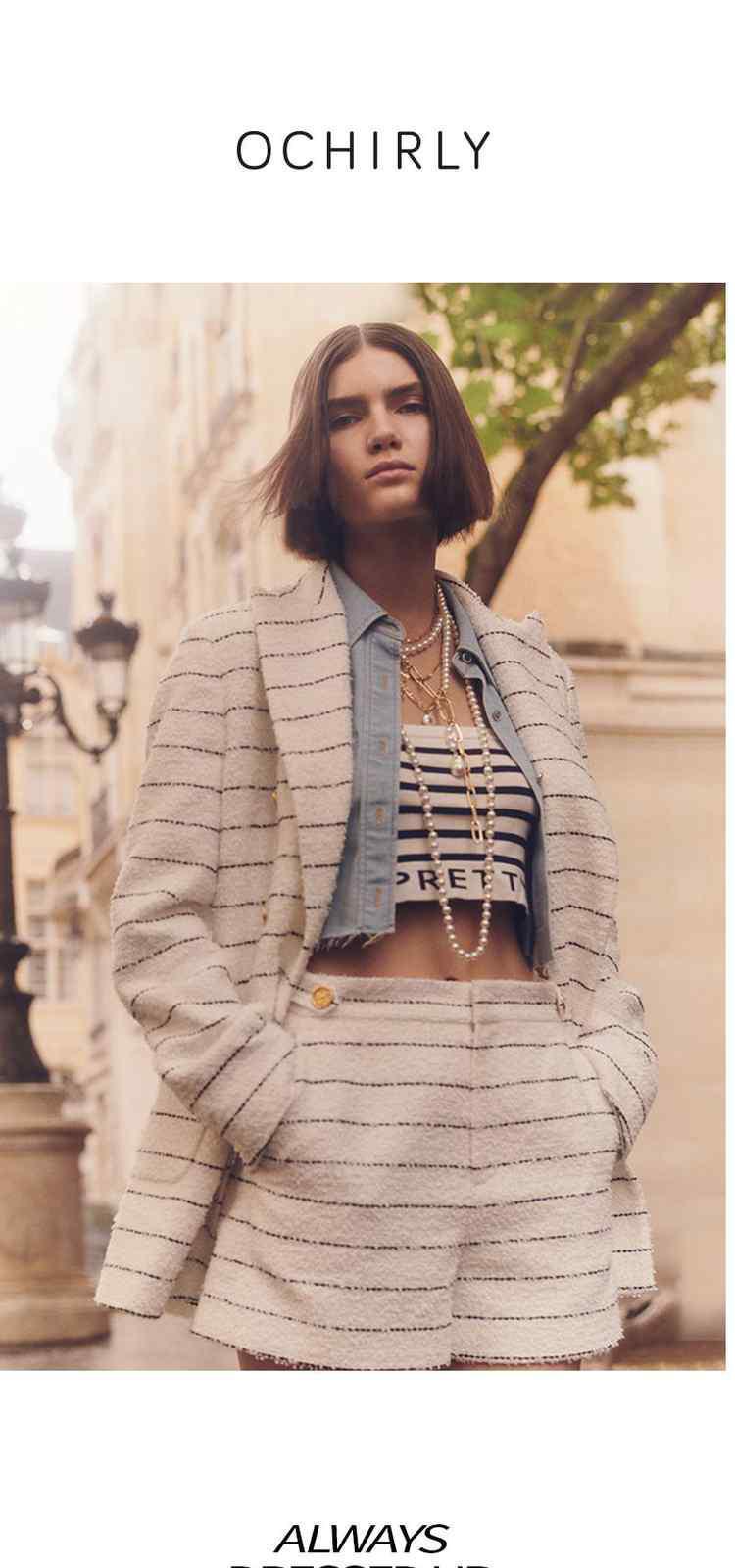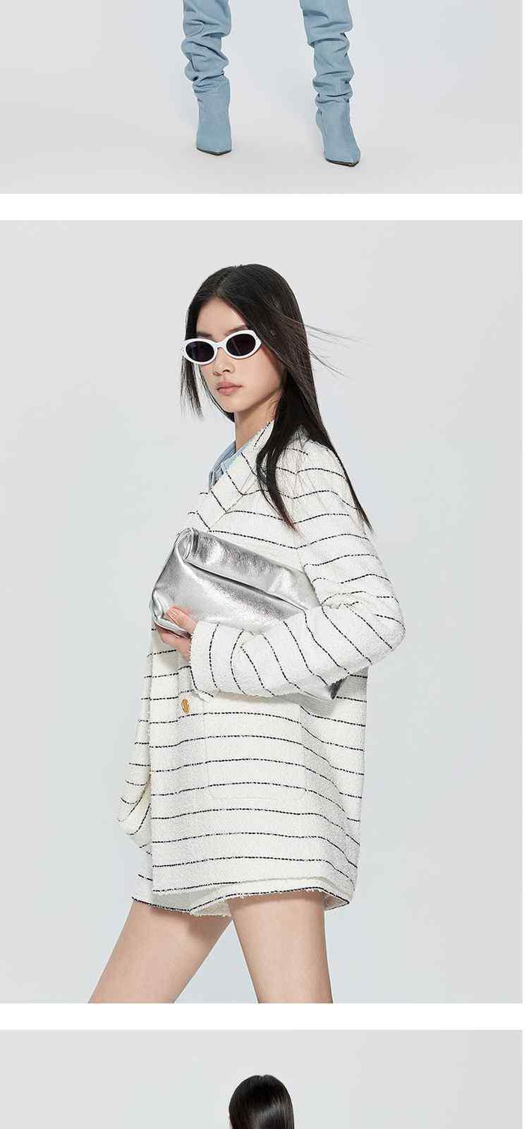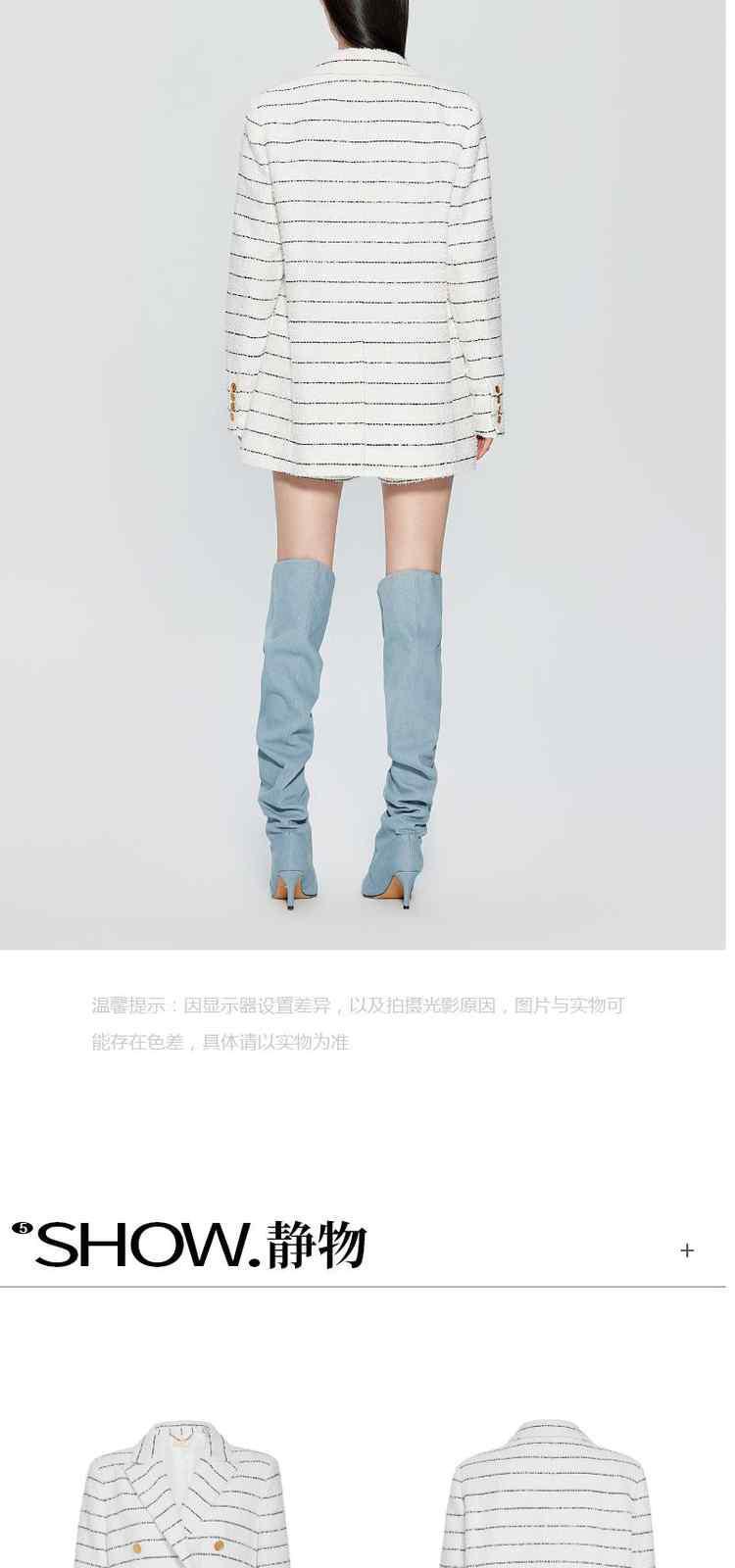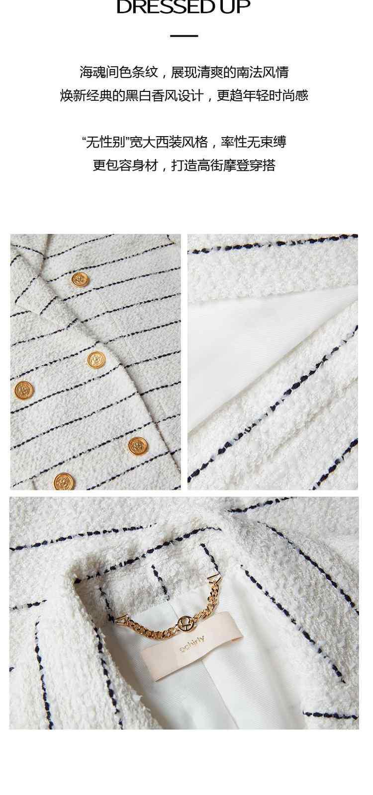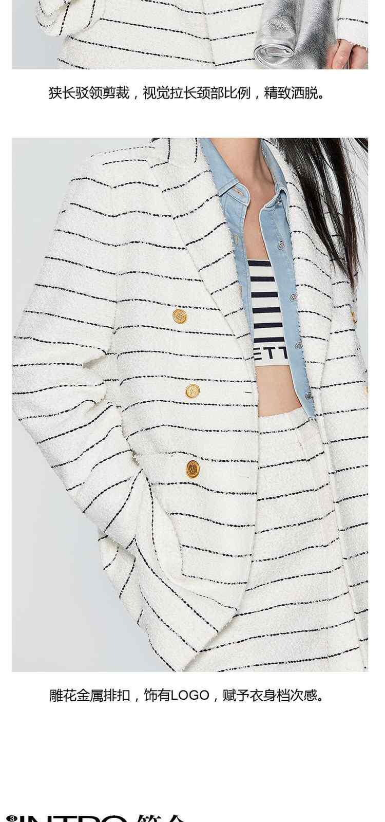 商品名称:春装法式中长条纹花式纱小香风西装外套女 452623