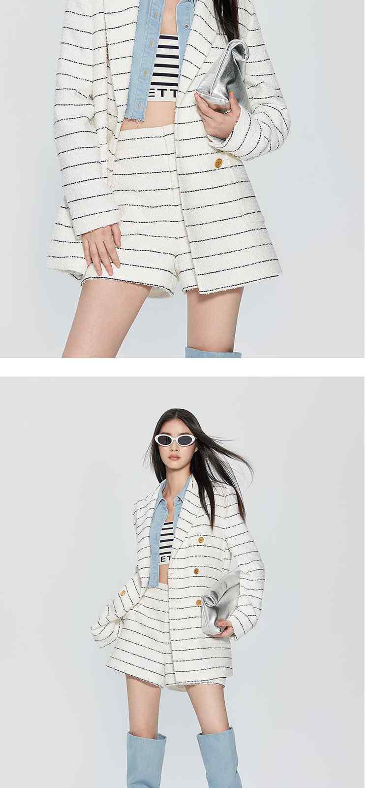 春装法式中长条纹花式纱小香风西装外套女 452623