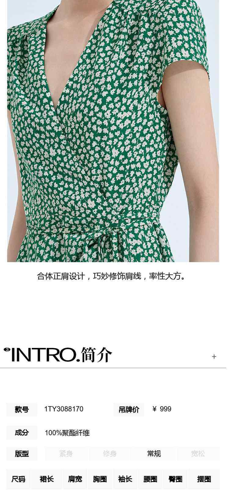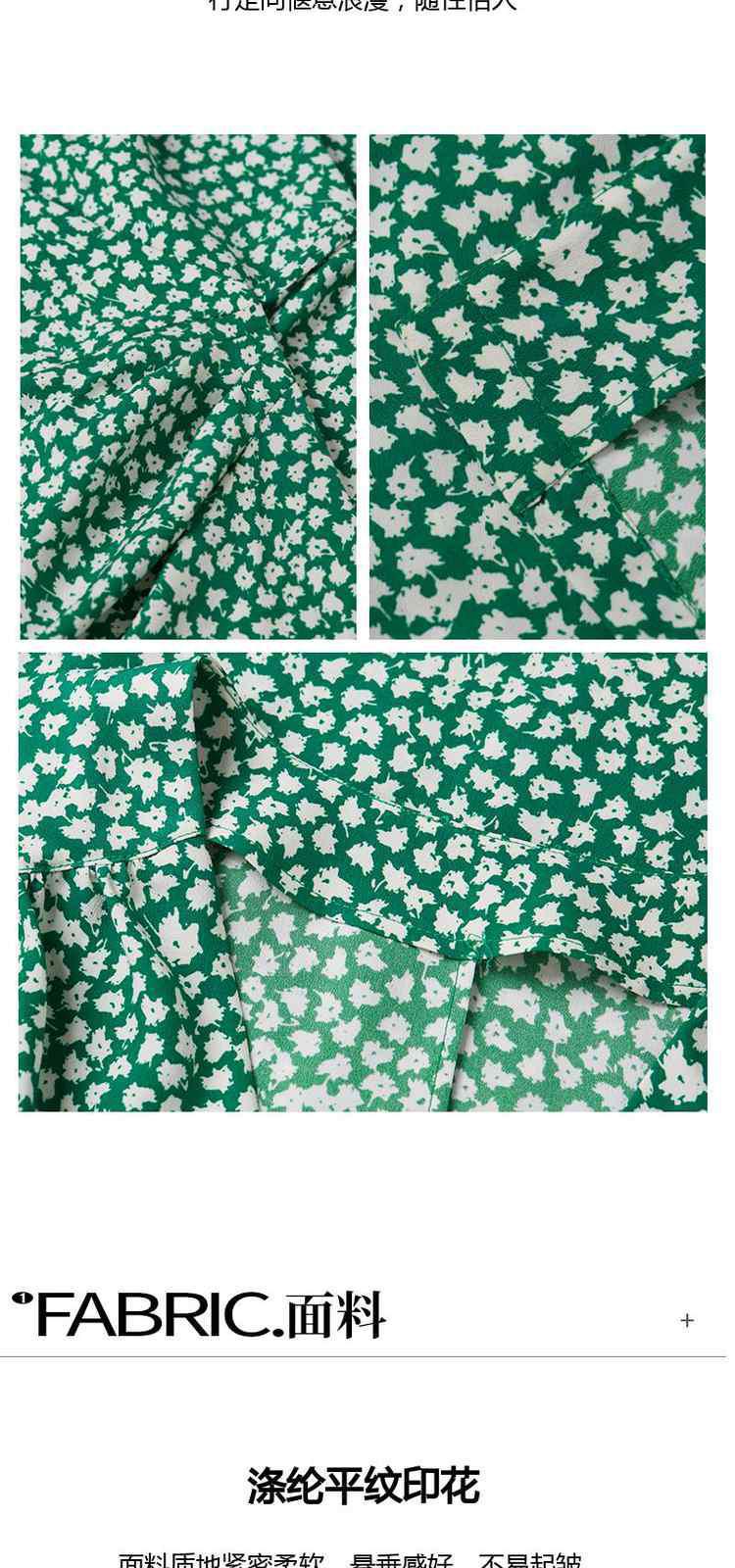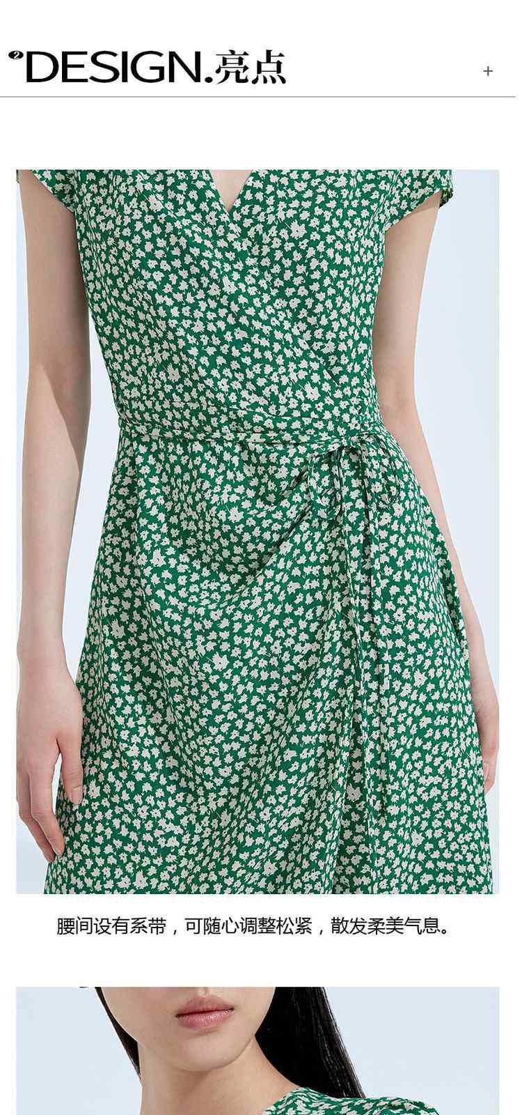 商品名称:度假系列 夏季V领系带显瘦碎花桔梗法式连衣裙 369615