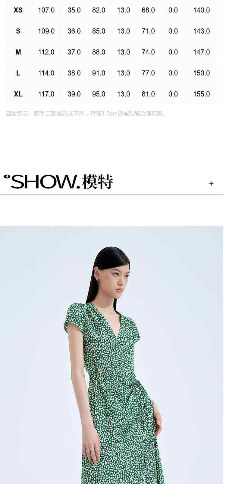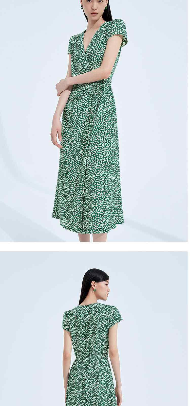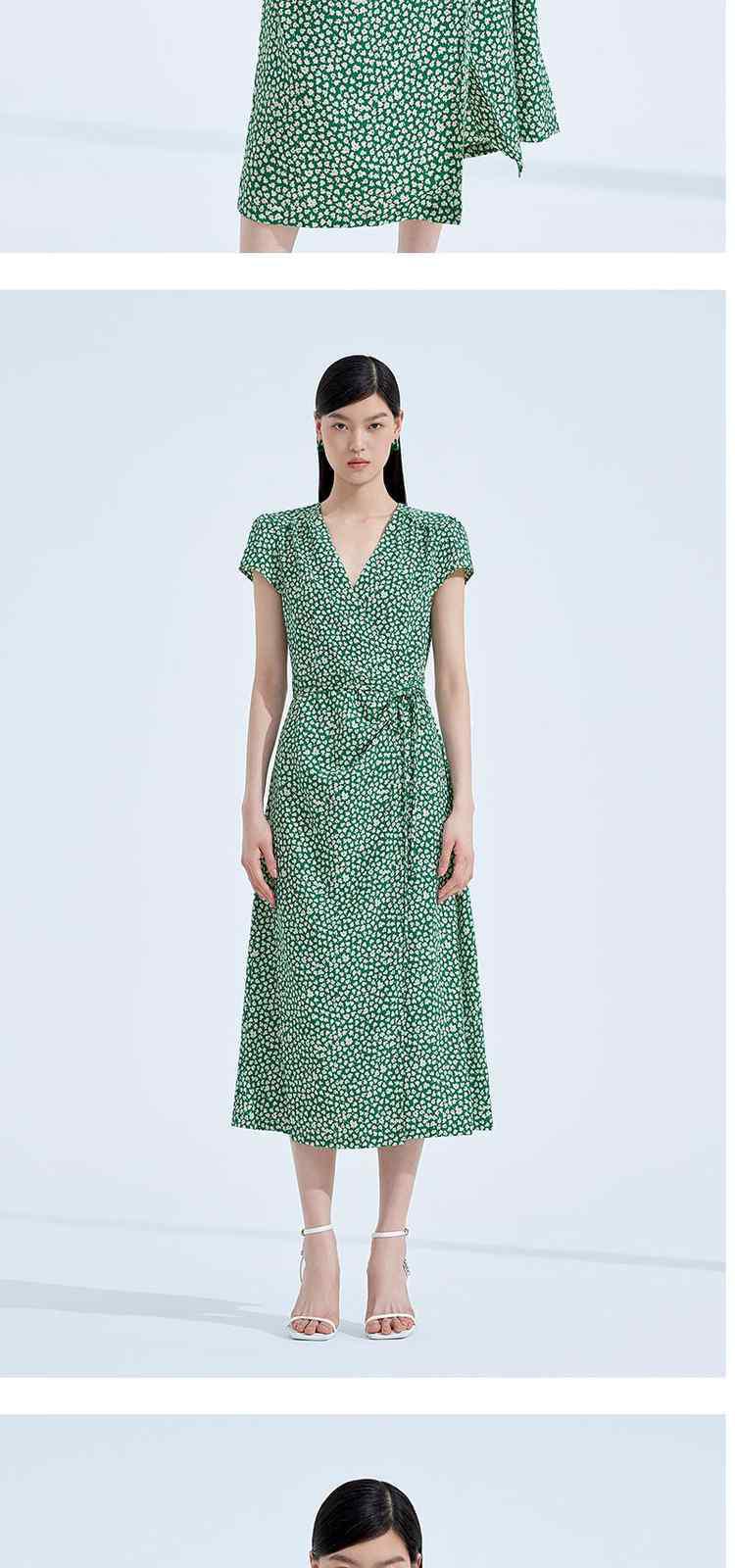 商品名称:度假系列 夏季V领系带显瘦碎花桔梗法式连衣裙 369615