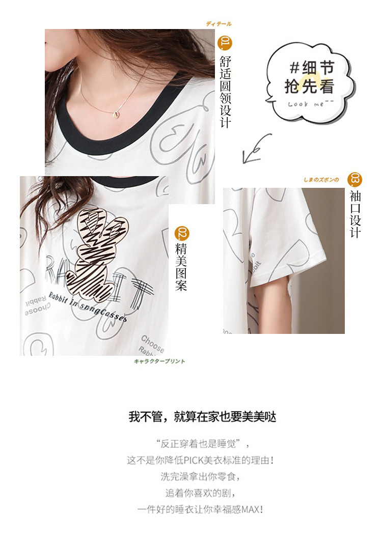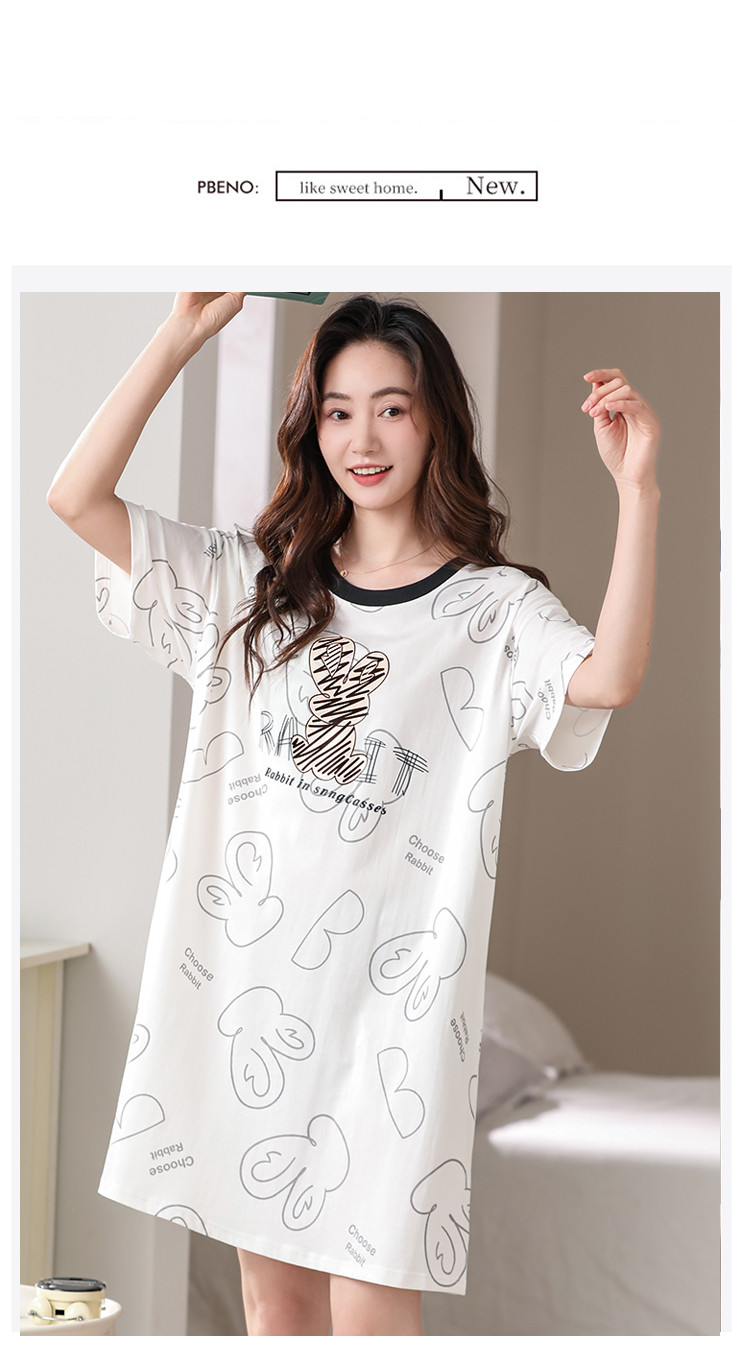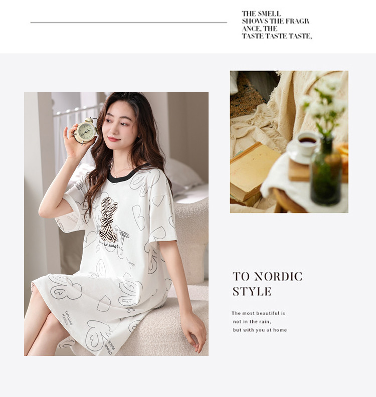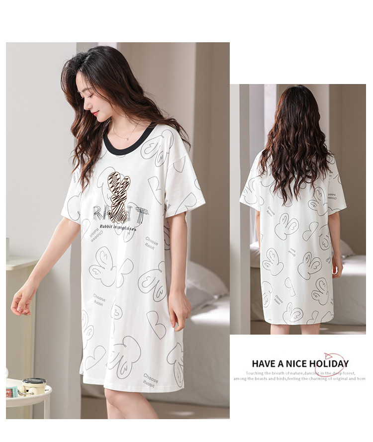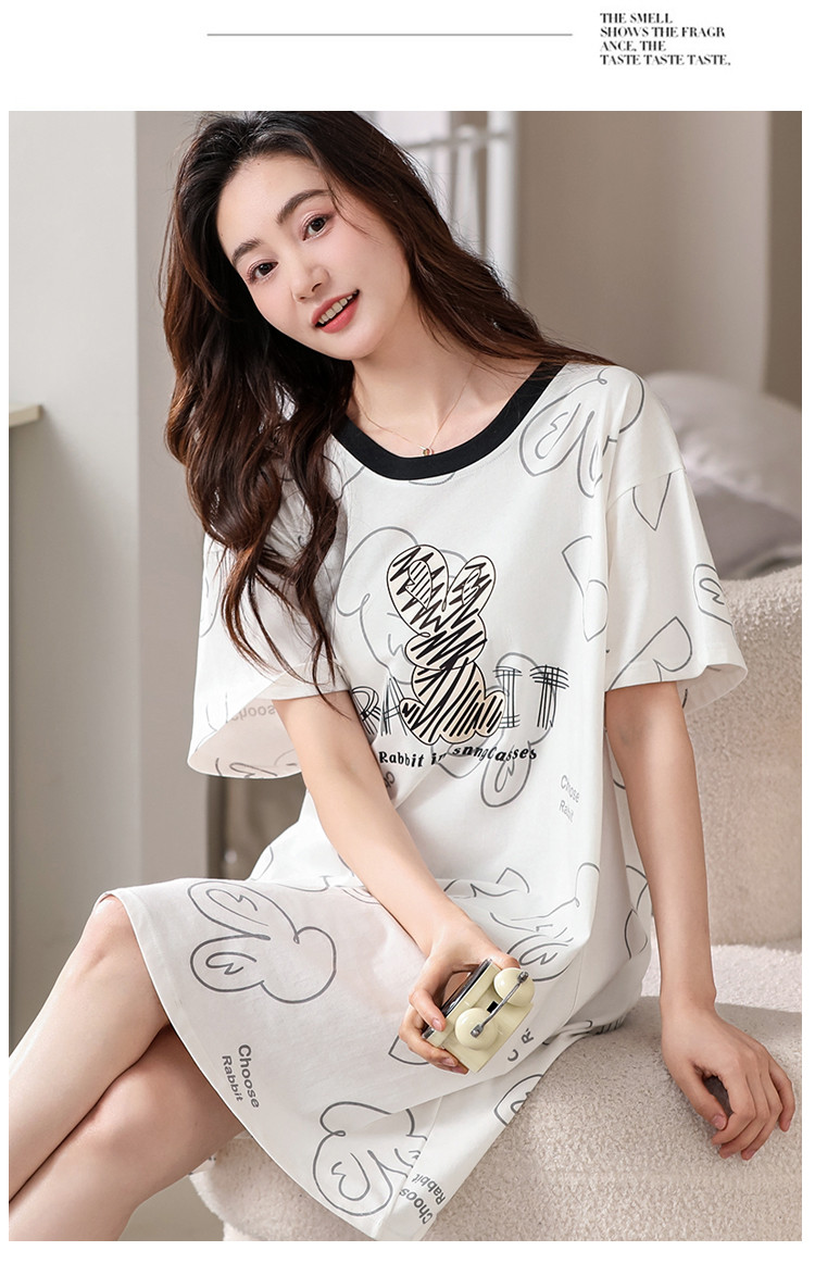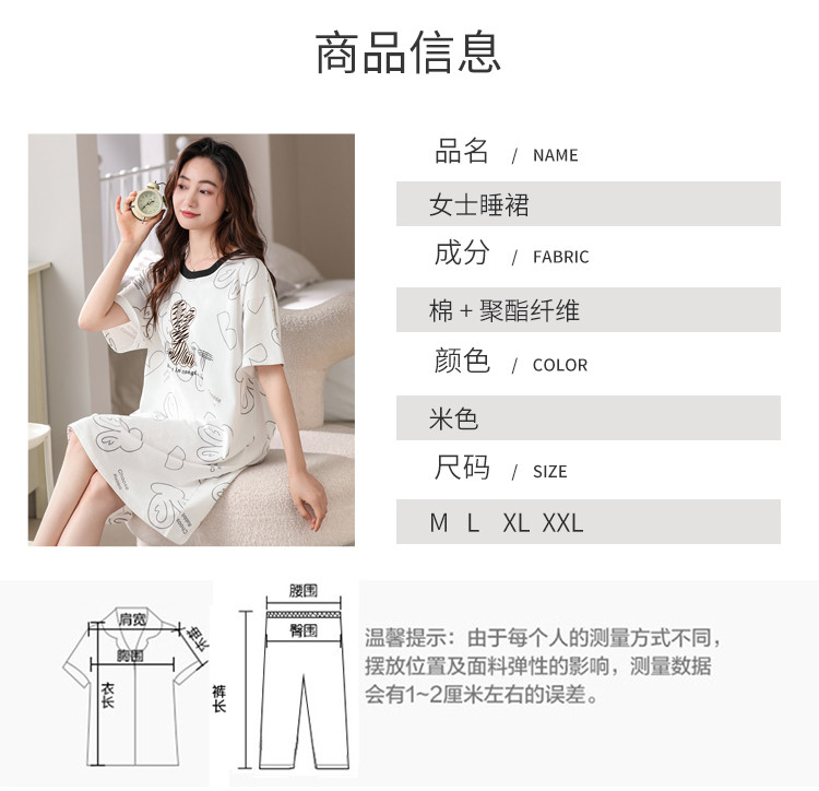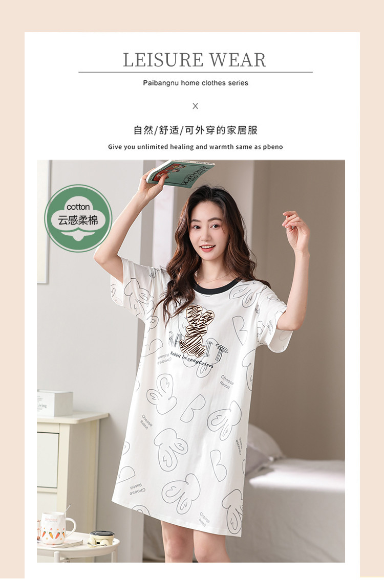 商品名称:亲肤棉柔夏季圆领甜美可爱睡衣女夏季短袖中长裙可外穿家居服 212318
