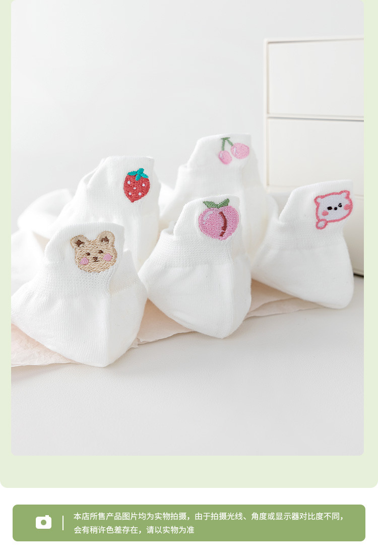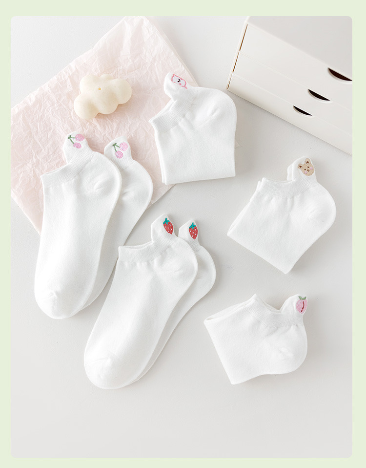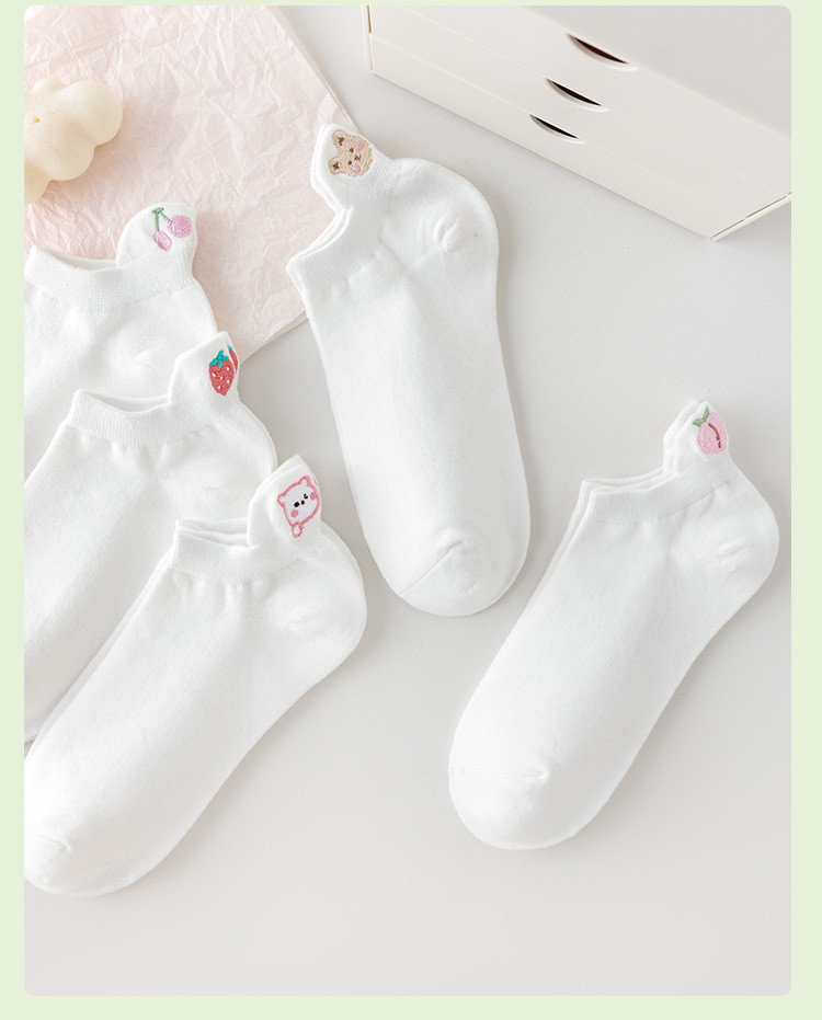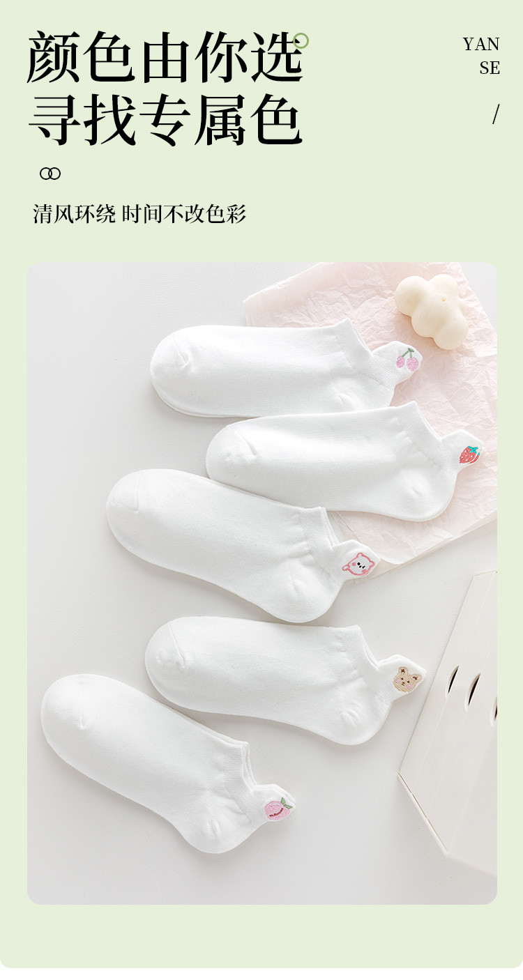 商品名称:【提耳护跟 可爱卡通】5双装刺绣短袜女士夏款舒适柔棉袜子 611147