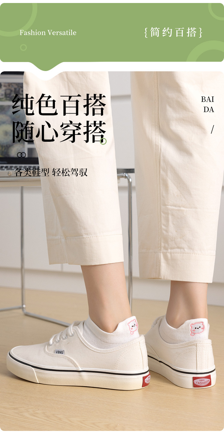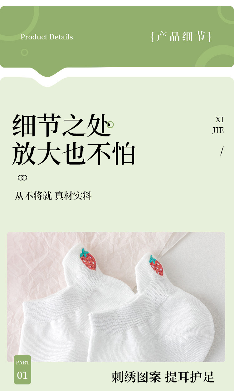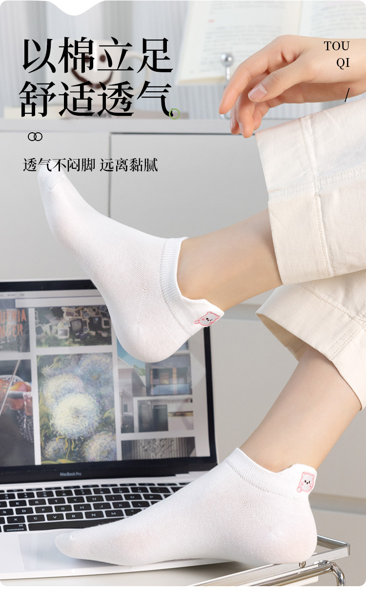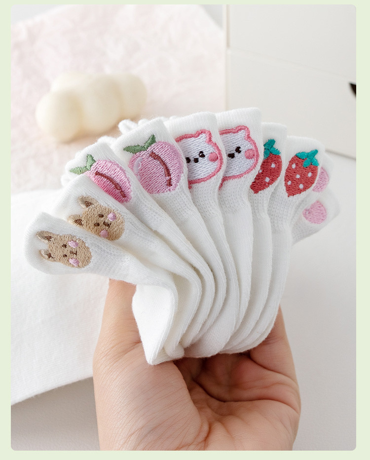 商品名称:【提耳护跟 可爱卡通】5双装刺绣短袜女士夏款舒适柔棉袜子 611147
