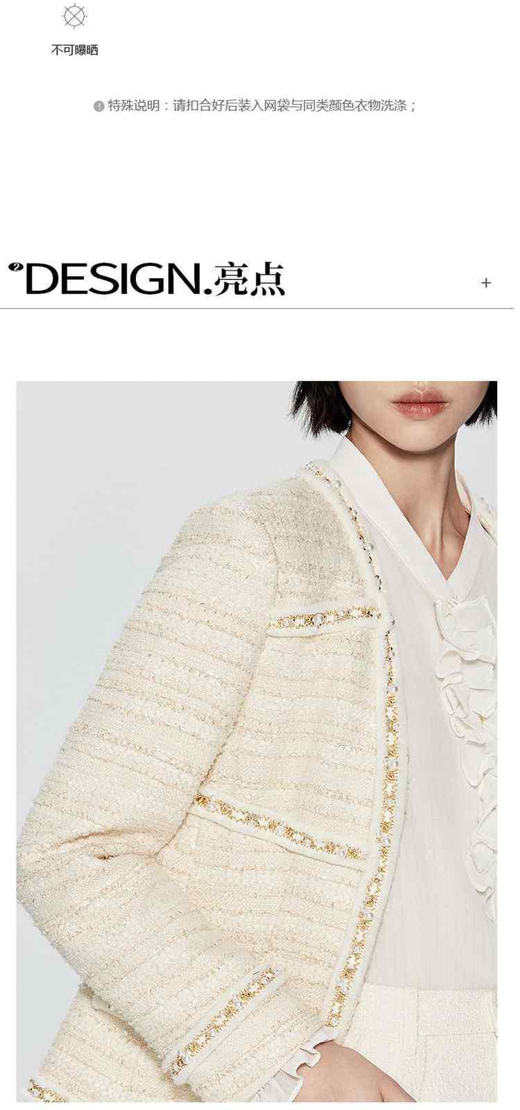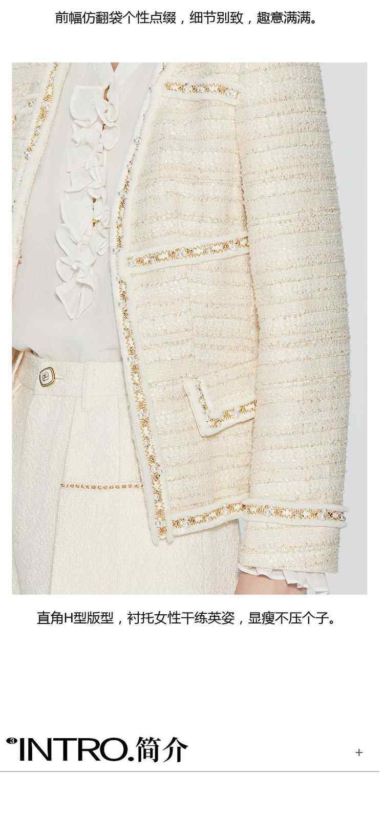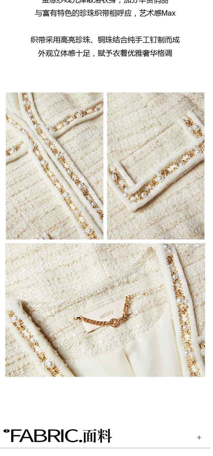 商品名称:春装 手工珍珠织带金葱肌理感小香风外套女 273679