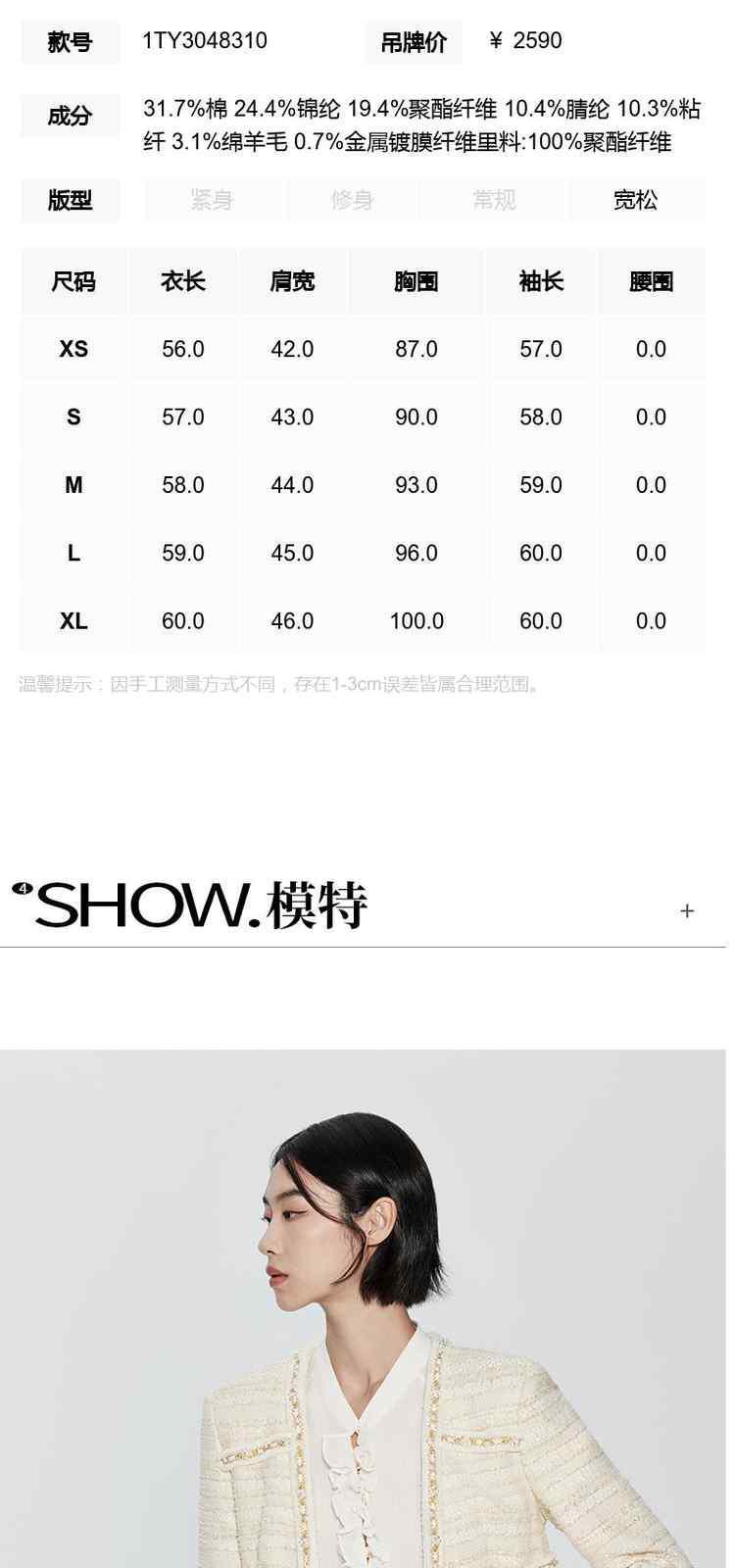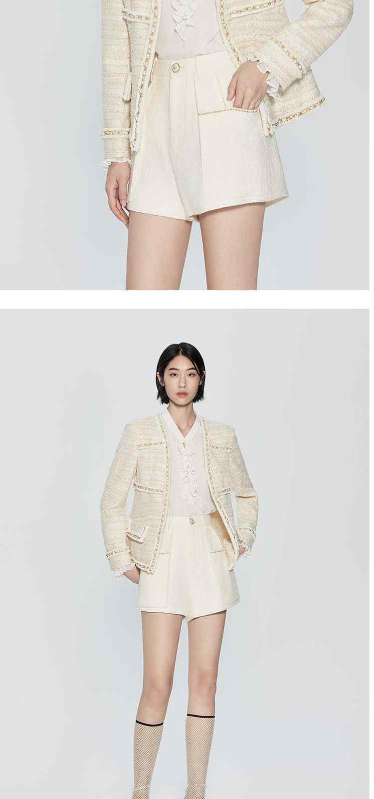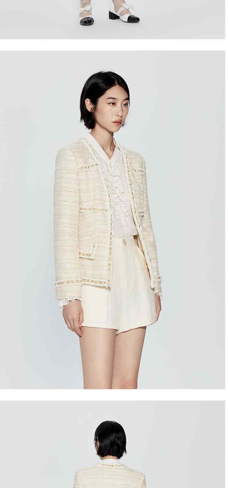 商品名称:春装 手工珍珠织带金葱肌理感小香风外套女 273679