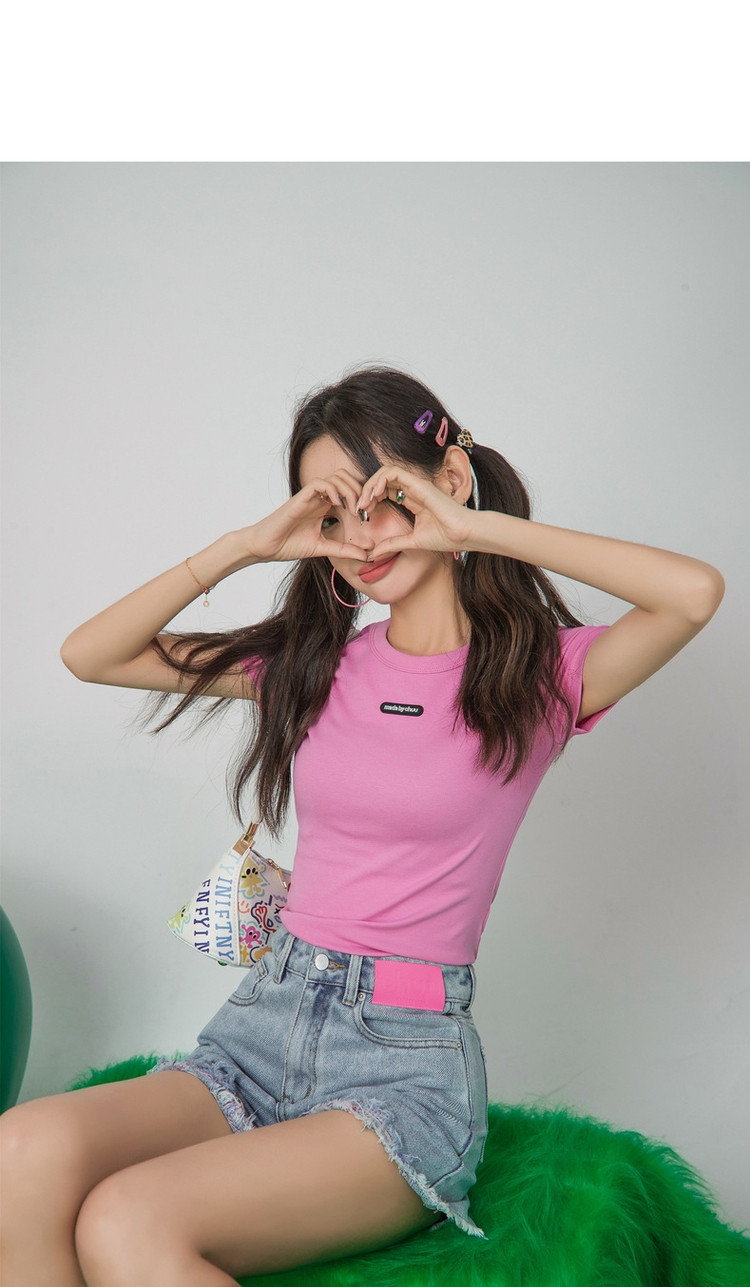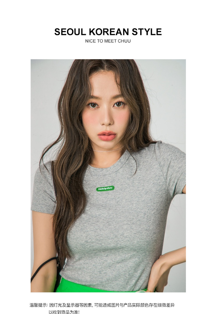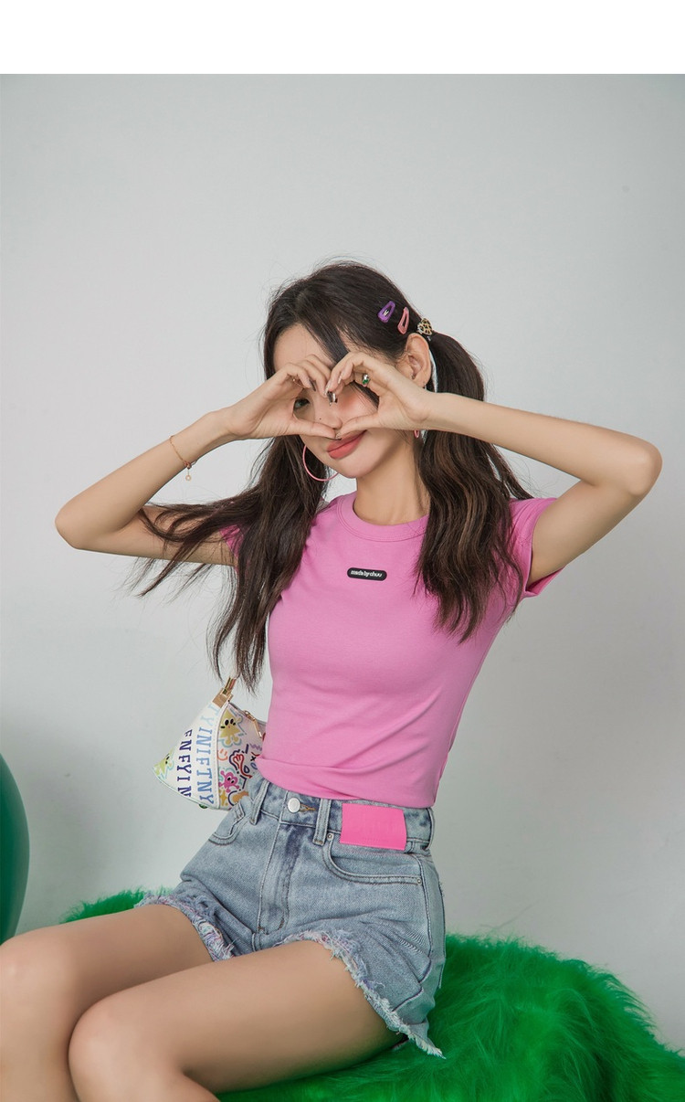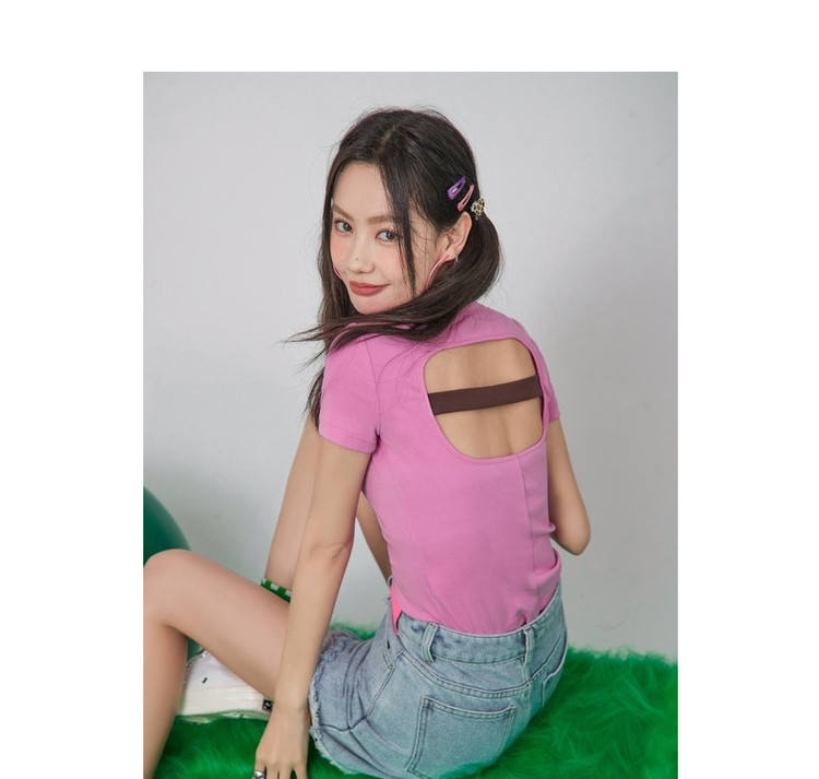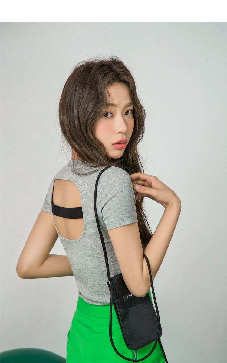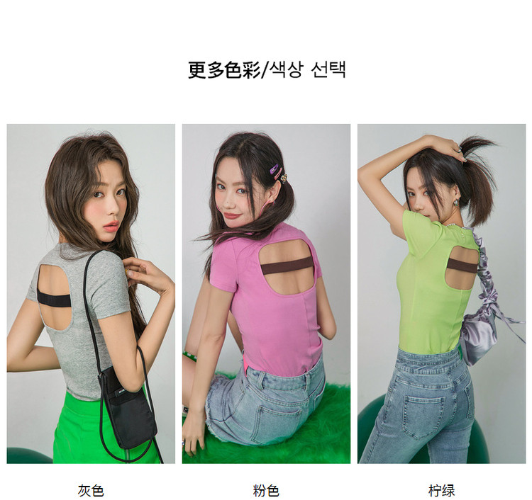 商品名称:甜辣露背短袖T恤女夏季小众贴标修身短上衣 442771
