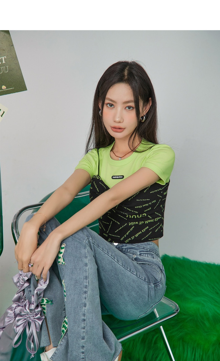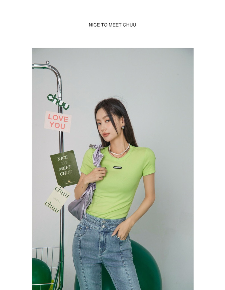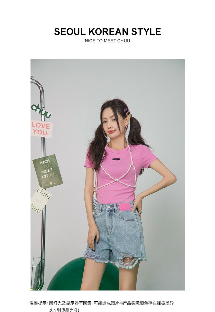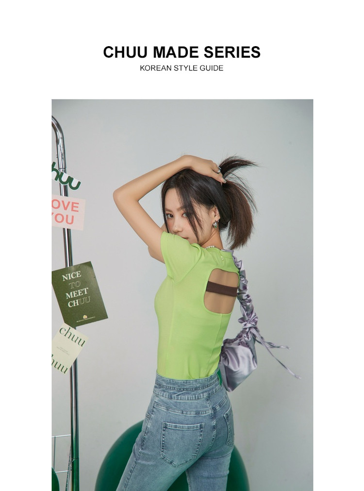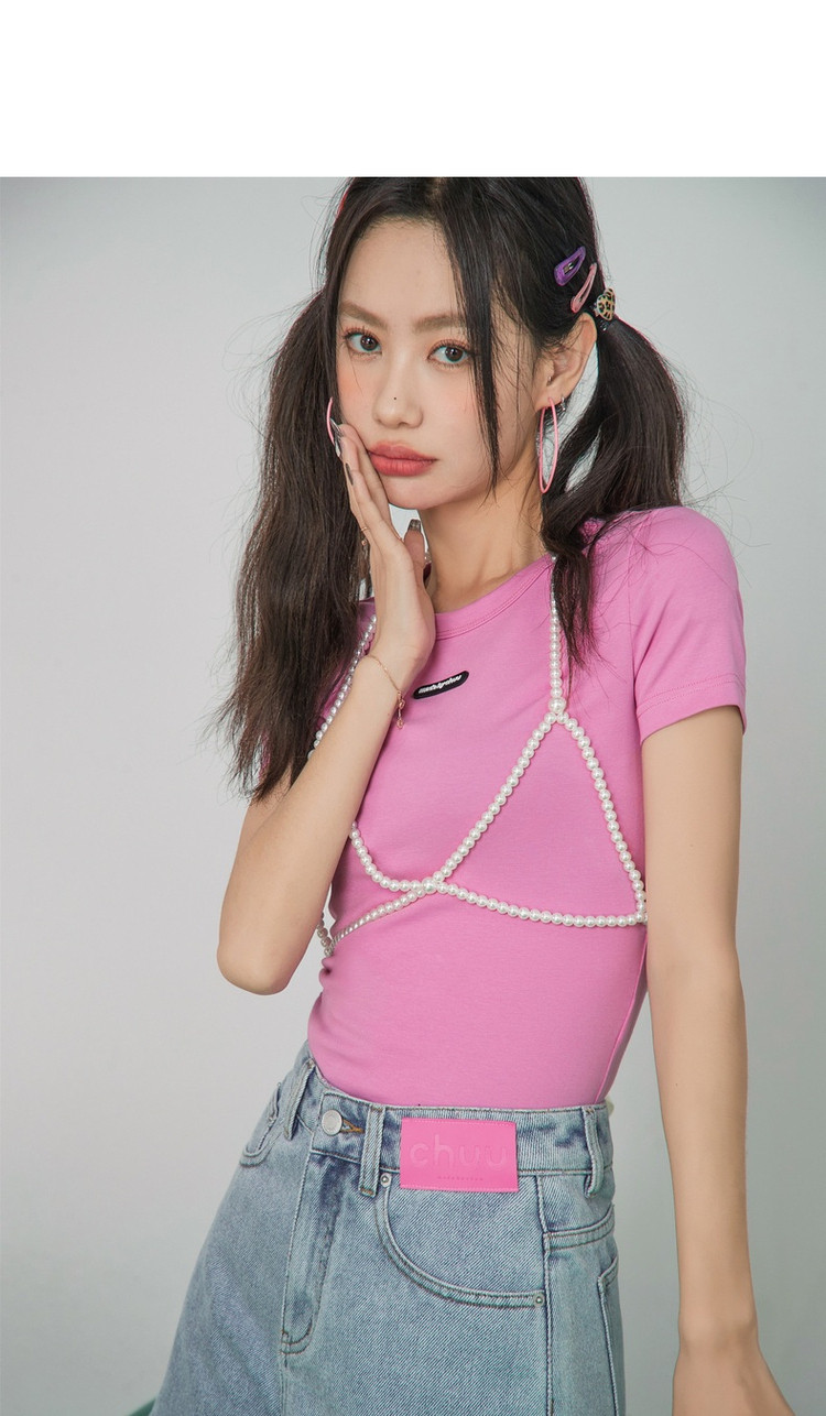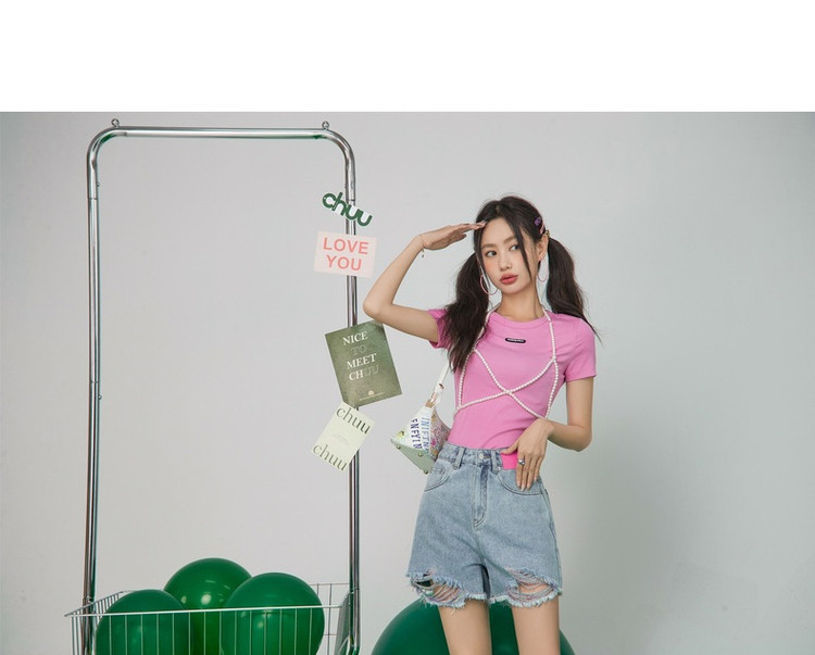 商品名称:甜辣露背短袖T恤女夏季小众贴标修身短上衣 442771