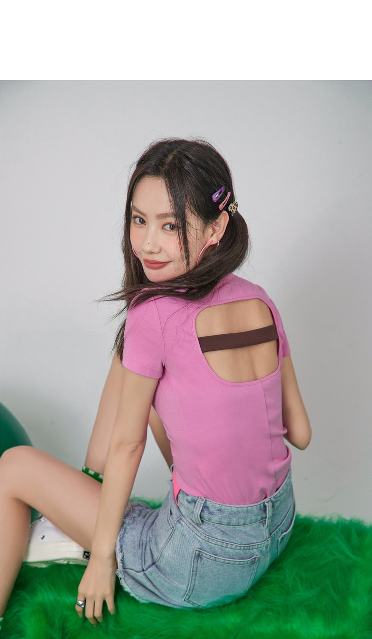 甜辣露背短袖T恤女夏季小众贴标修身短上衣 442771
