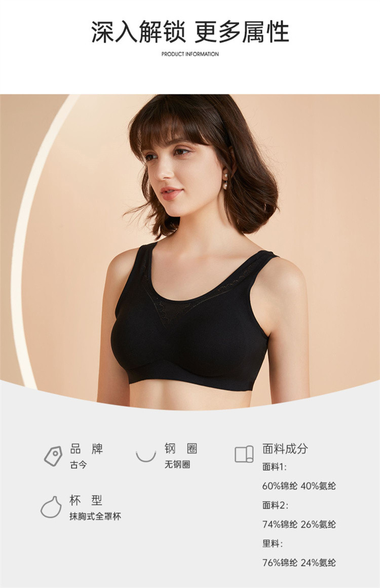 商品名称:古今内衣女舒适无钢圈侧收副乳胸罩透气网纱无痕美背文胸承托聚拢 782283