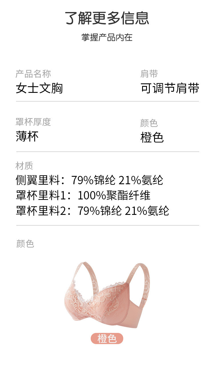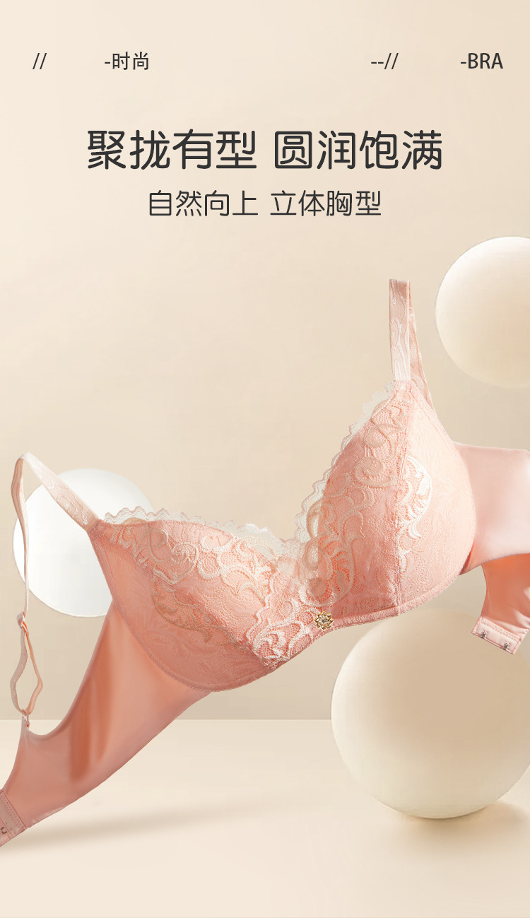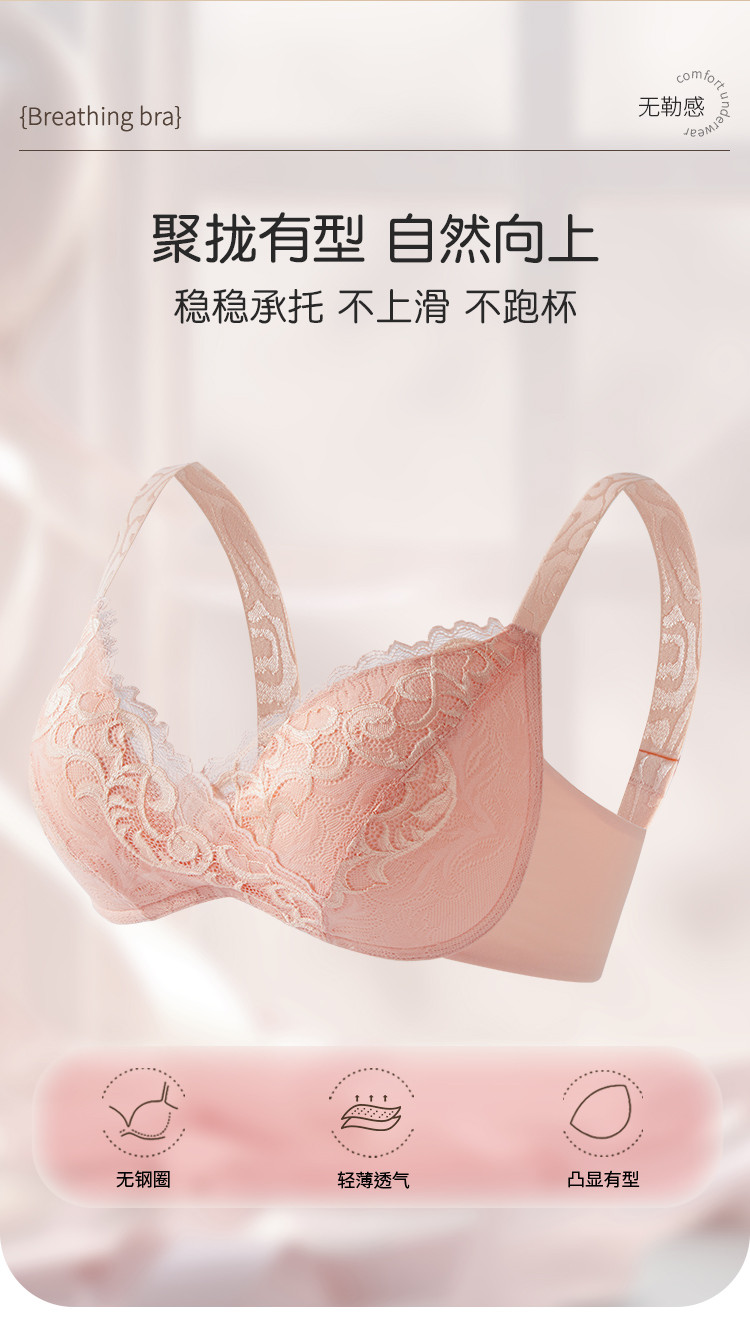 商品名称:【大胸显小】女士内衣聚拢侧收副乳防下垂蕾丝杯面无钢圈文胸罩女 608203