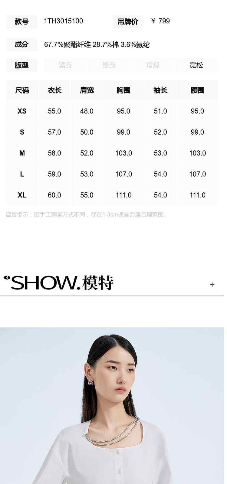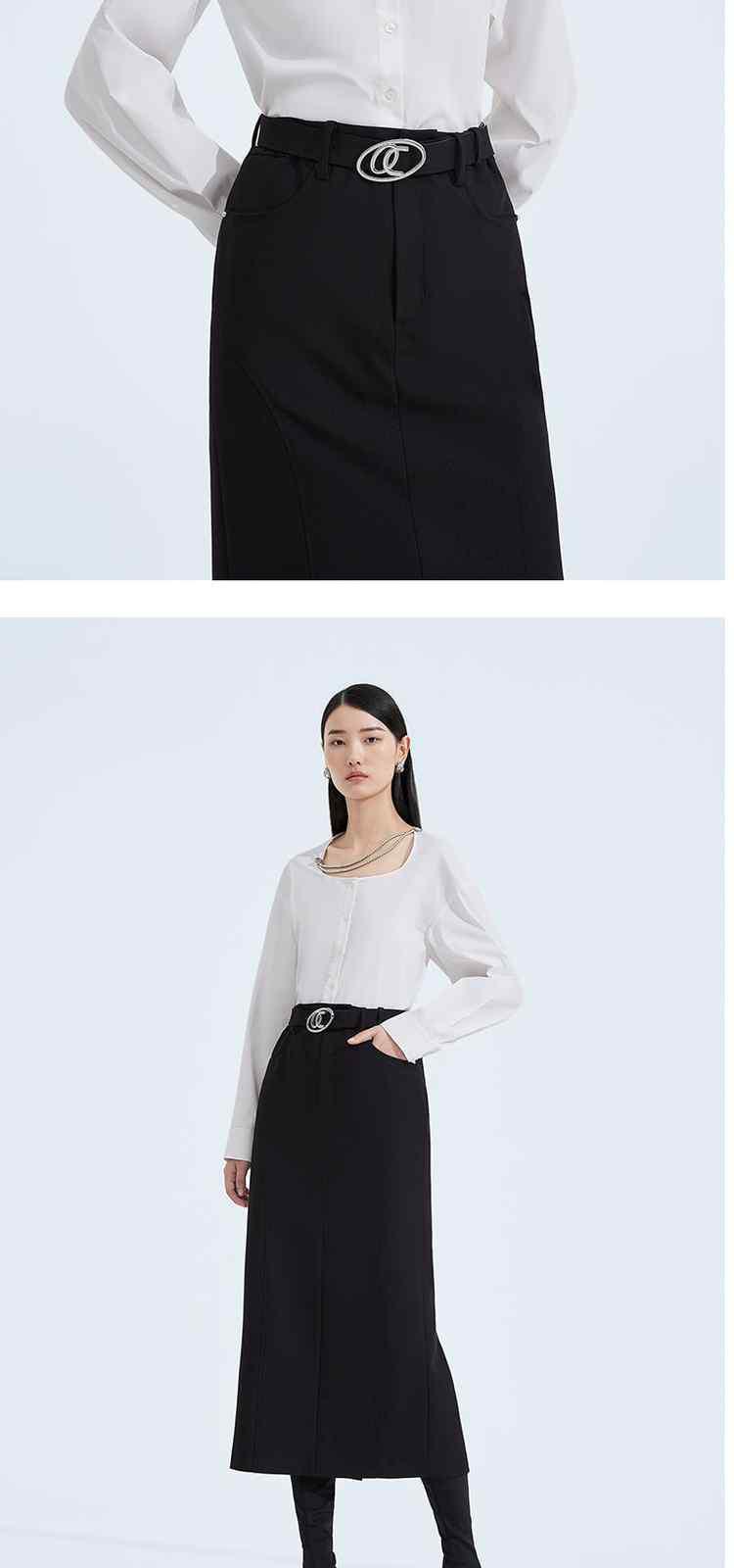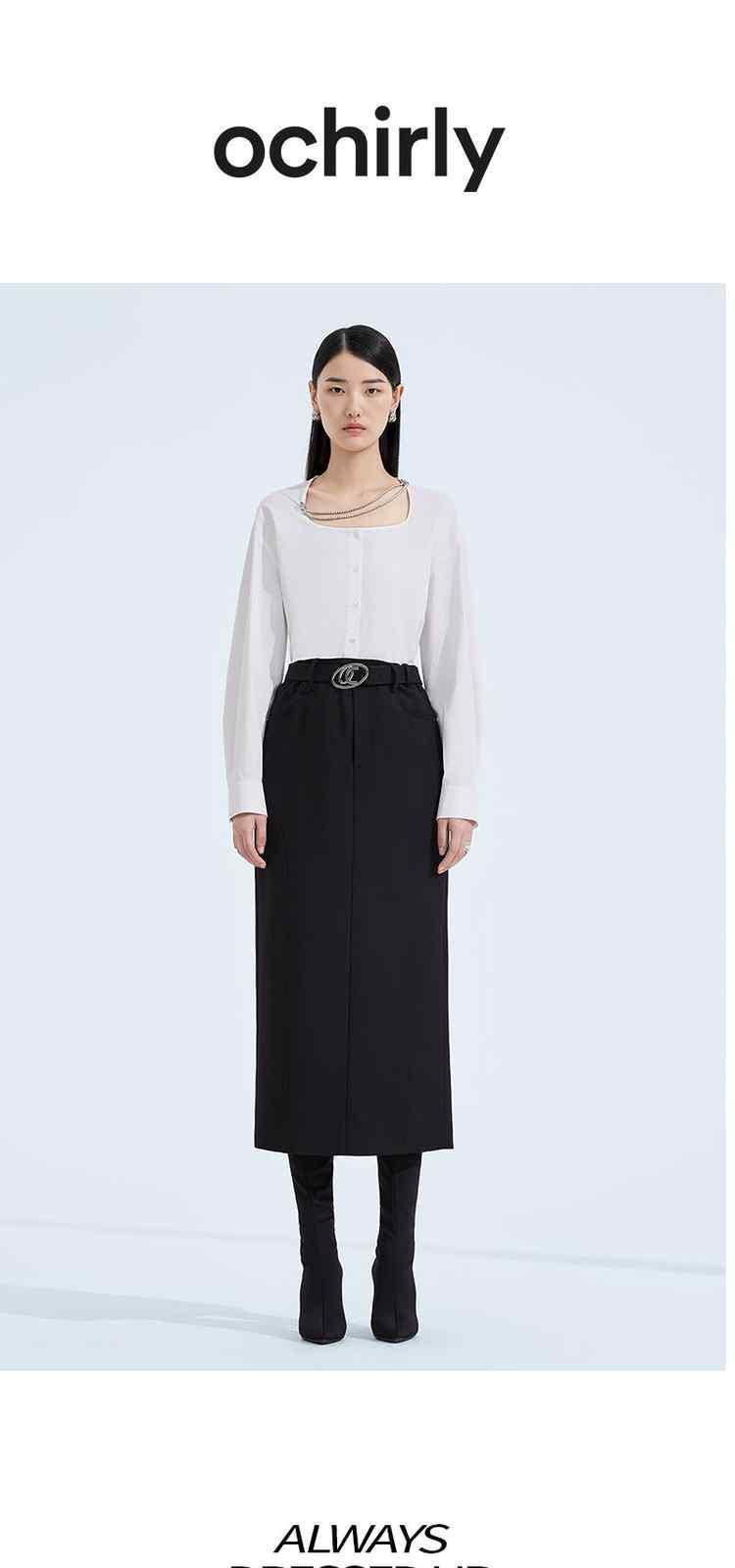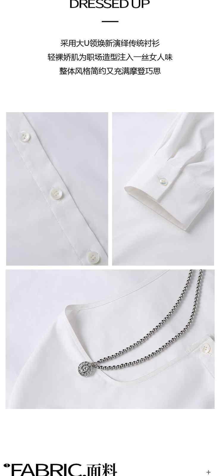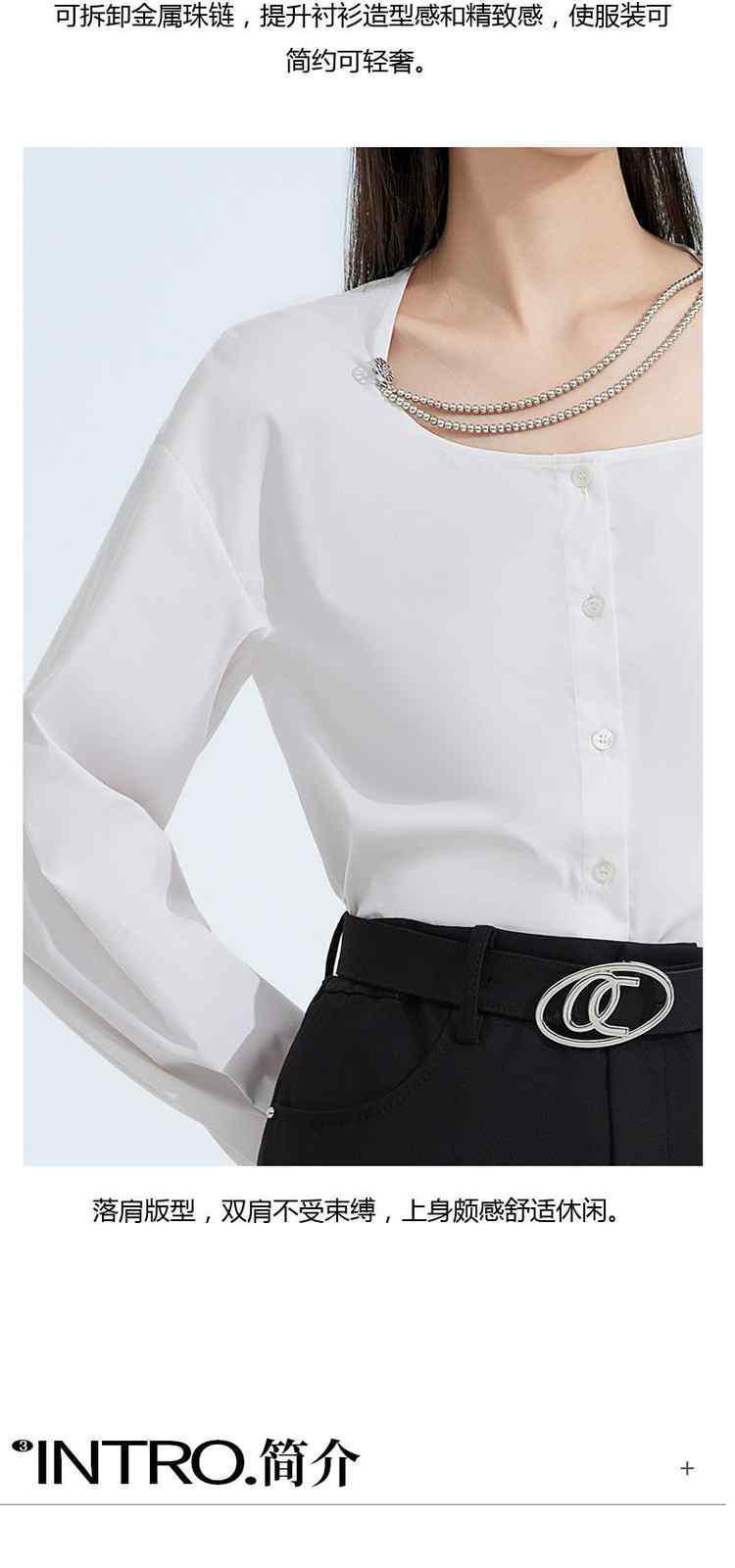 商品名称:黑标系列春装 配链饰U领法式进口面料衬衫女 531599