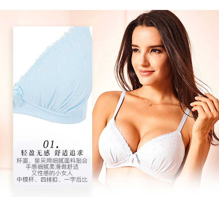 商品名称:【捡漏款】大胸无钢圈舒服刺绣性感侧收聚拢文胸内衣女 206859