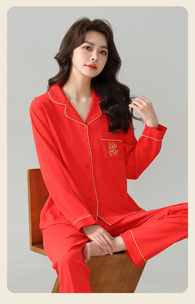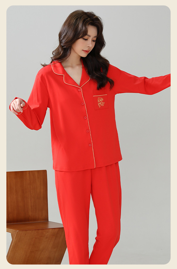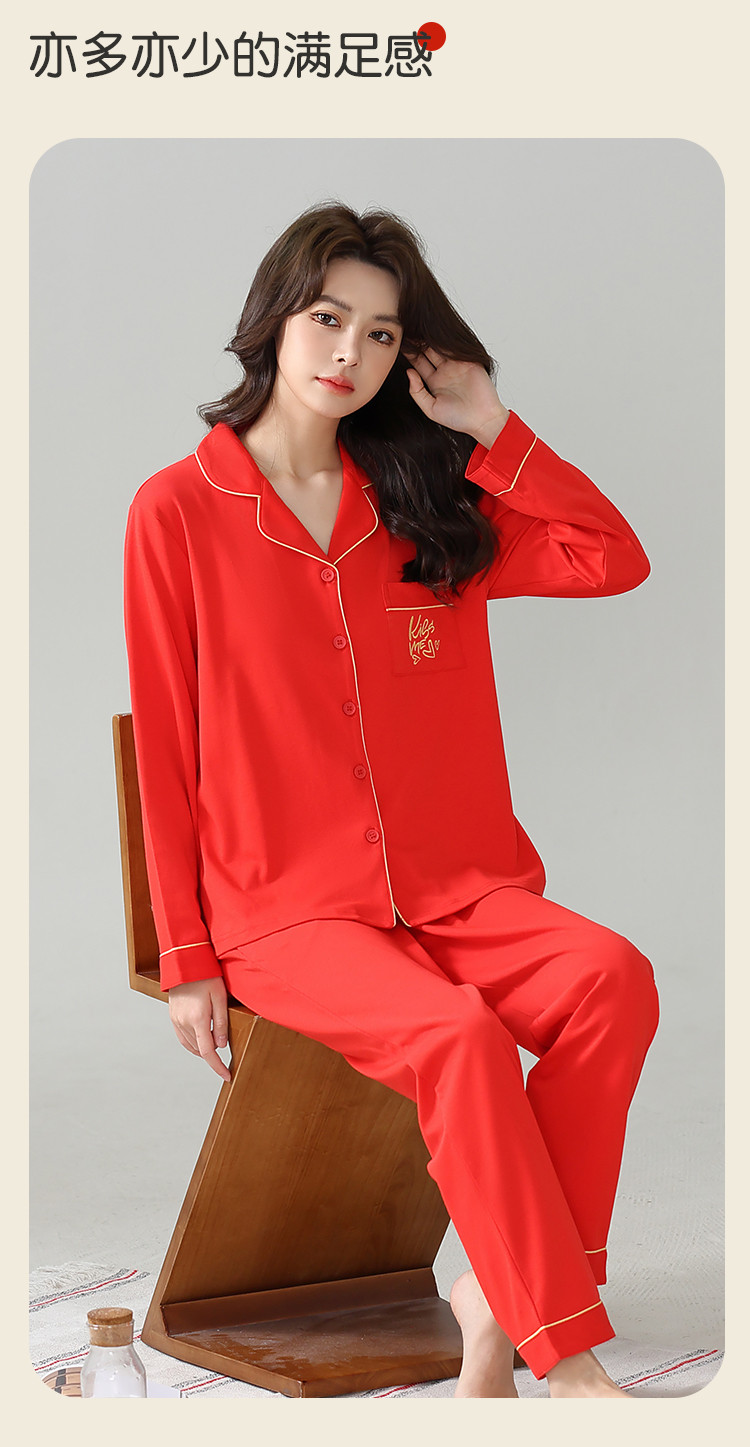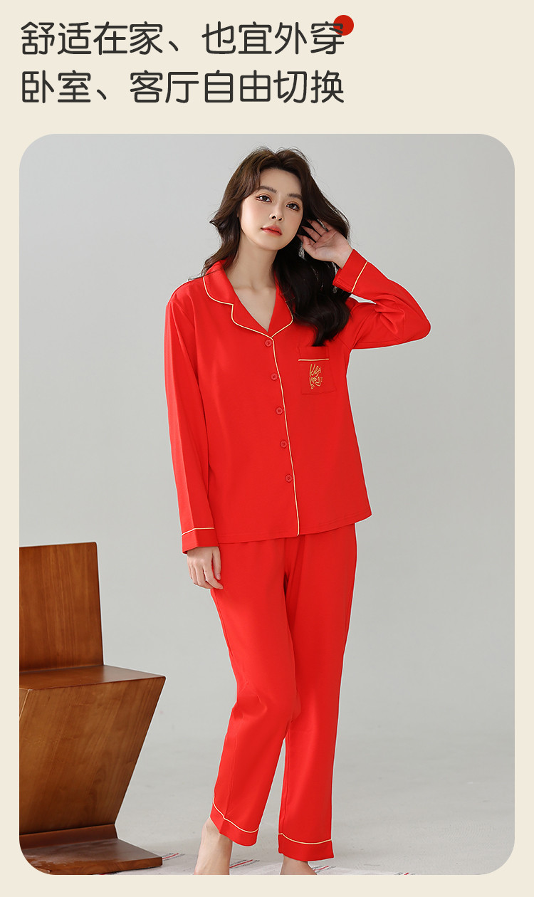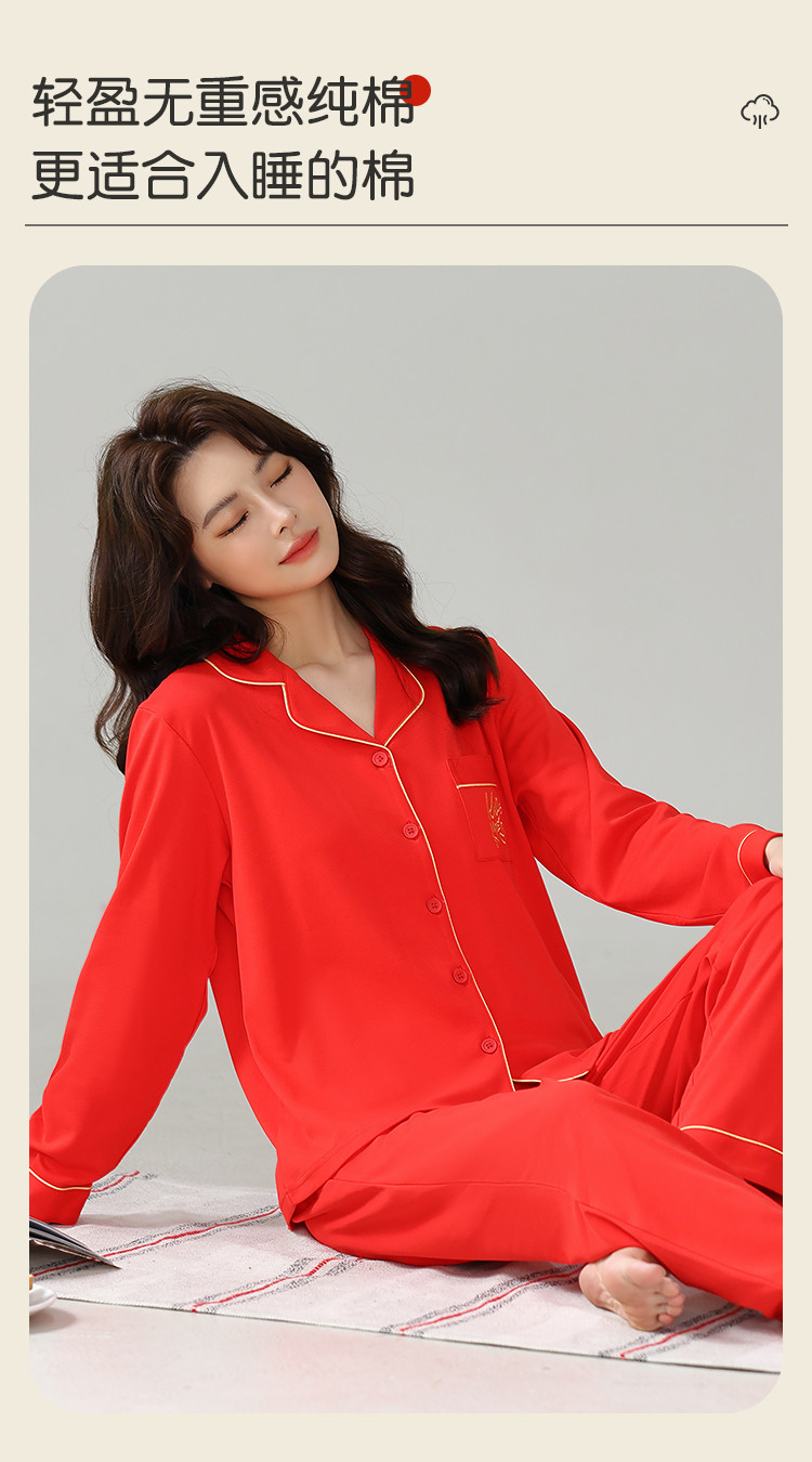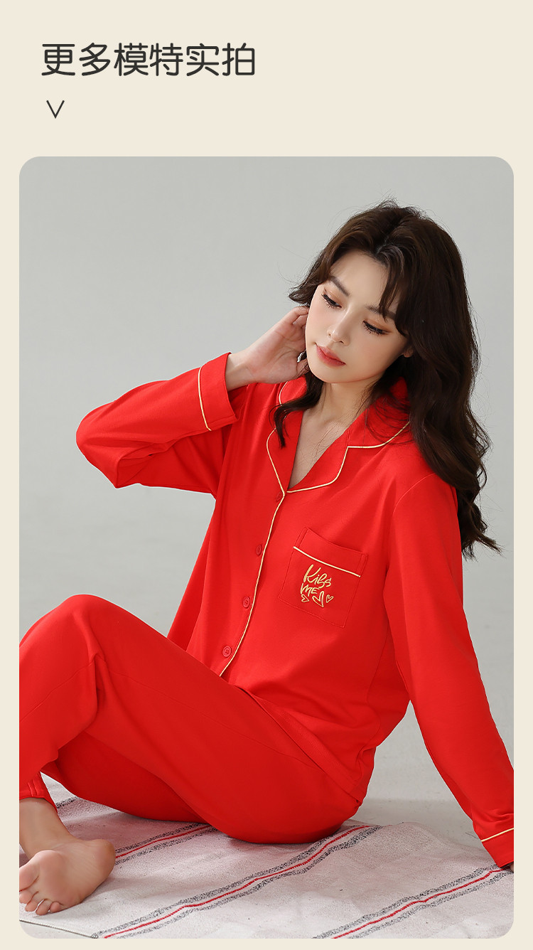 【100%棉】情人节婚庆本命年红品睡衣女士睡衣女家居服女纯棉 516747