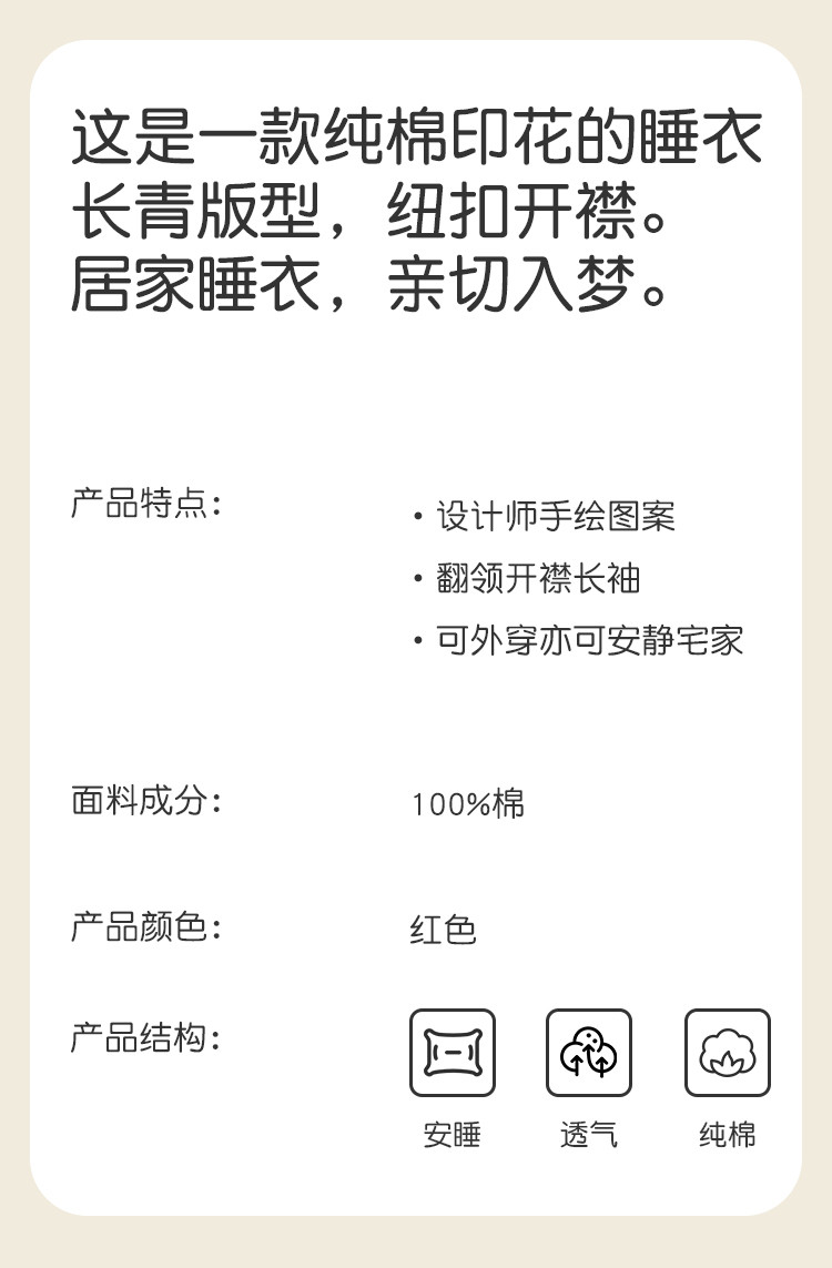 商品名称:【100%棉】情人节婚庆本命年红品睡衣女士睡衣女家居服女纯棉 516747