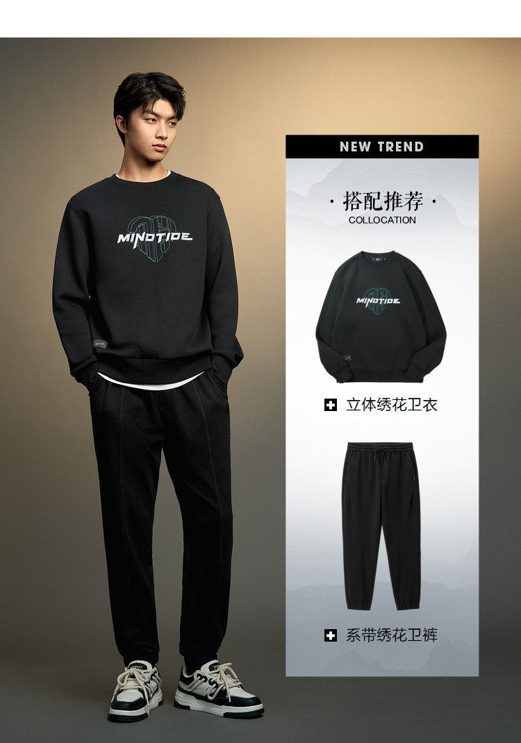 商品名称:【中国心】春秋热销立体绣花圆领微弹宽松男士卫衣 476040