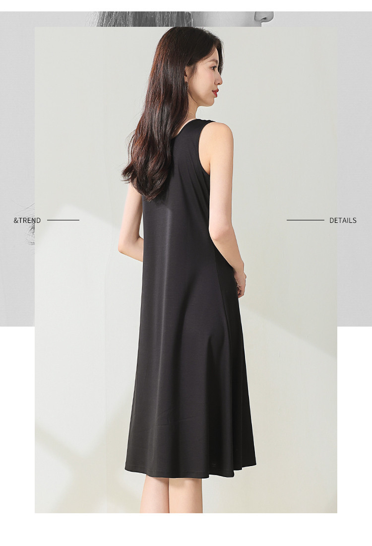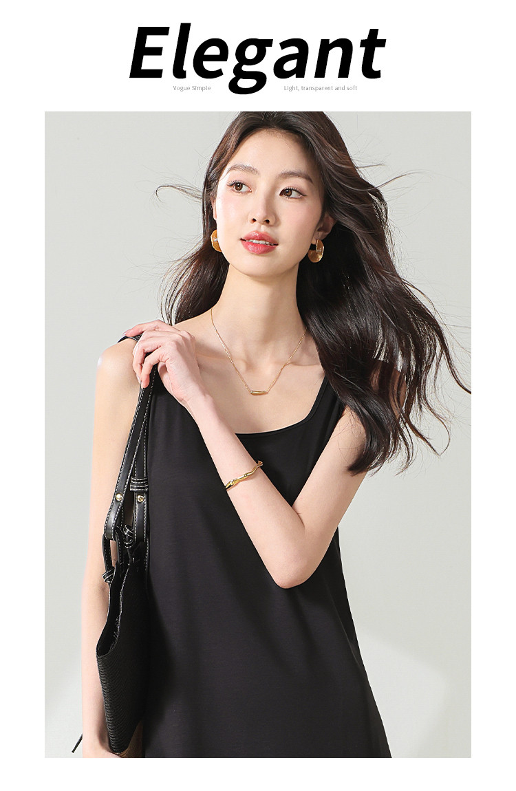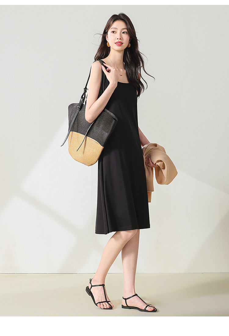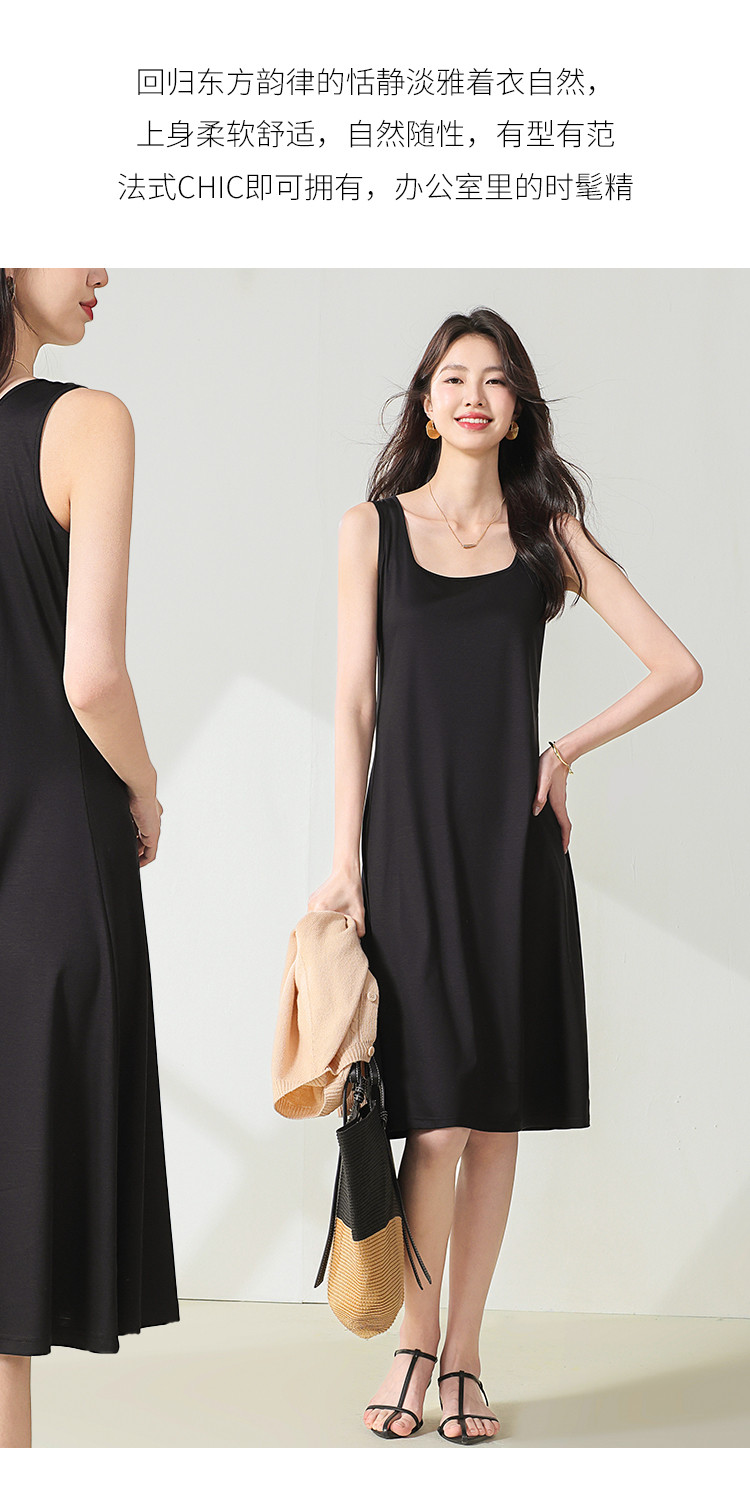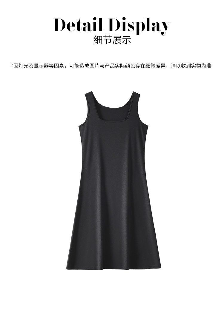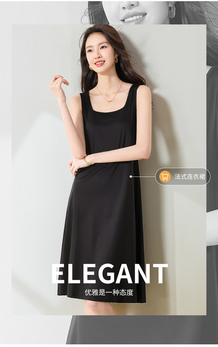商品名称:【赫本风】夏季优雅方领法式无袖小黑裙含桑蚕丝连衣裙女裙子 386515
