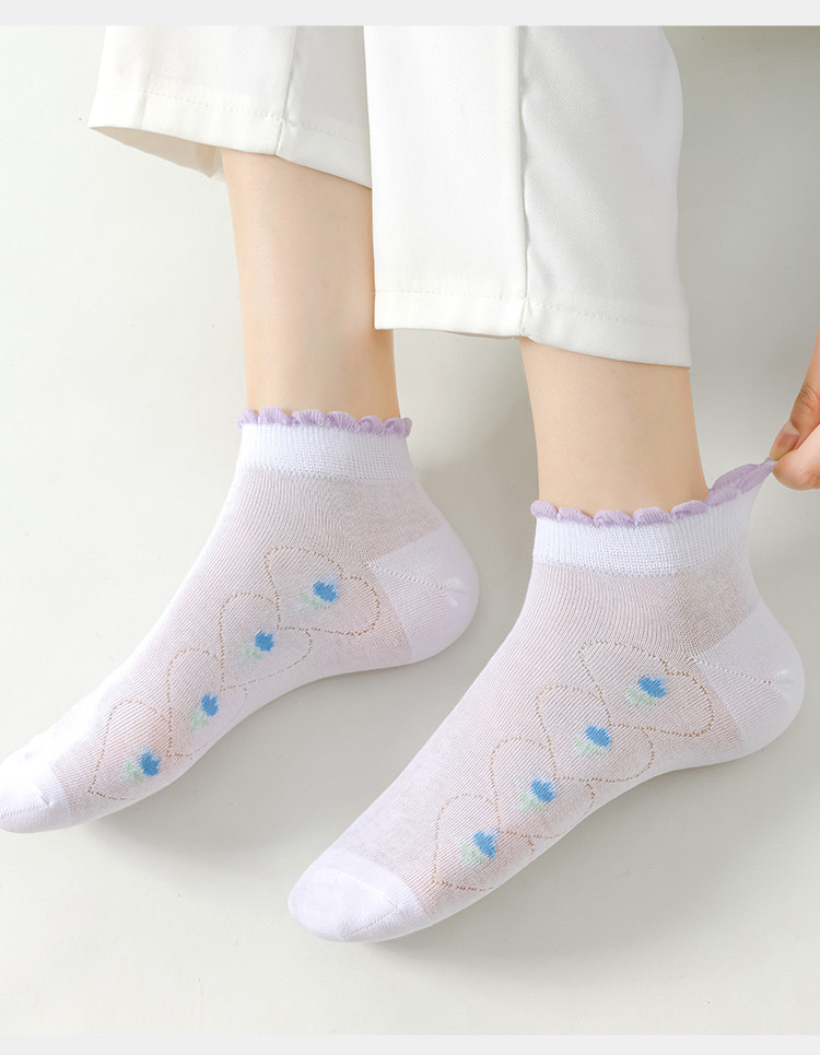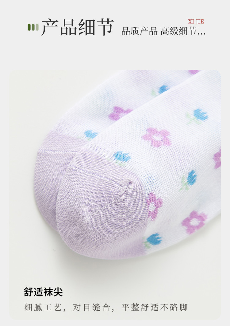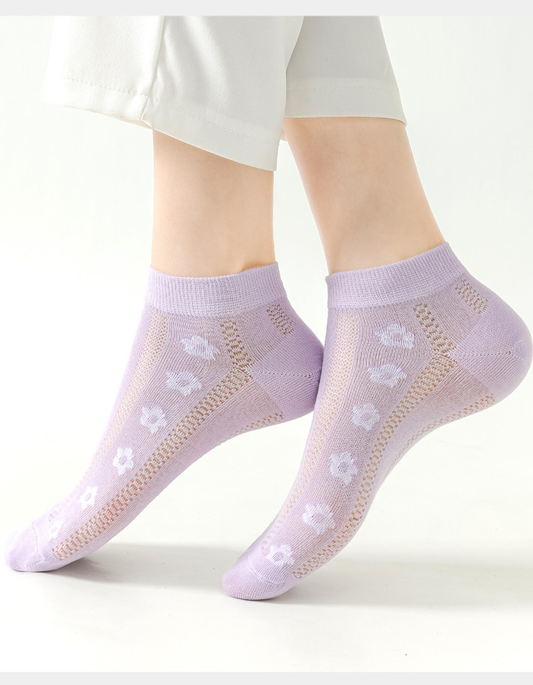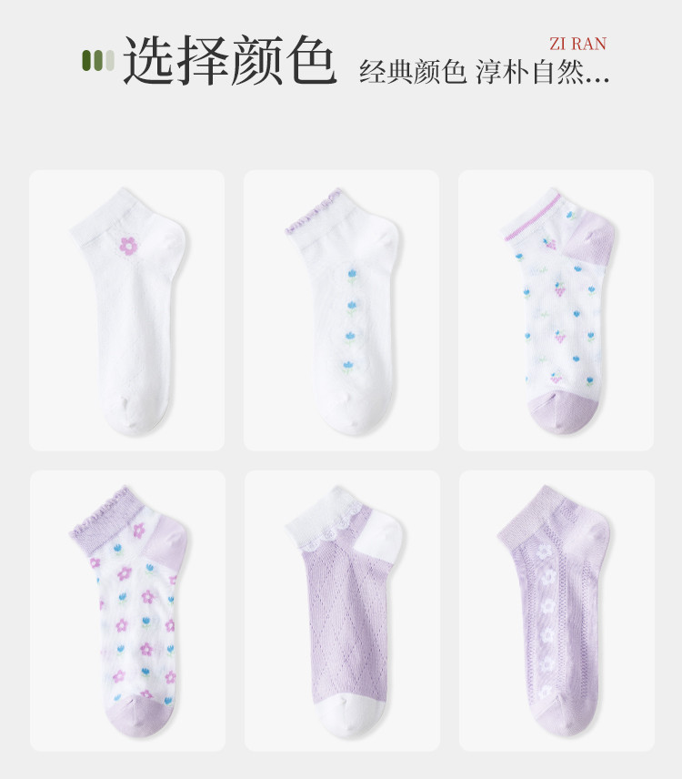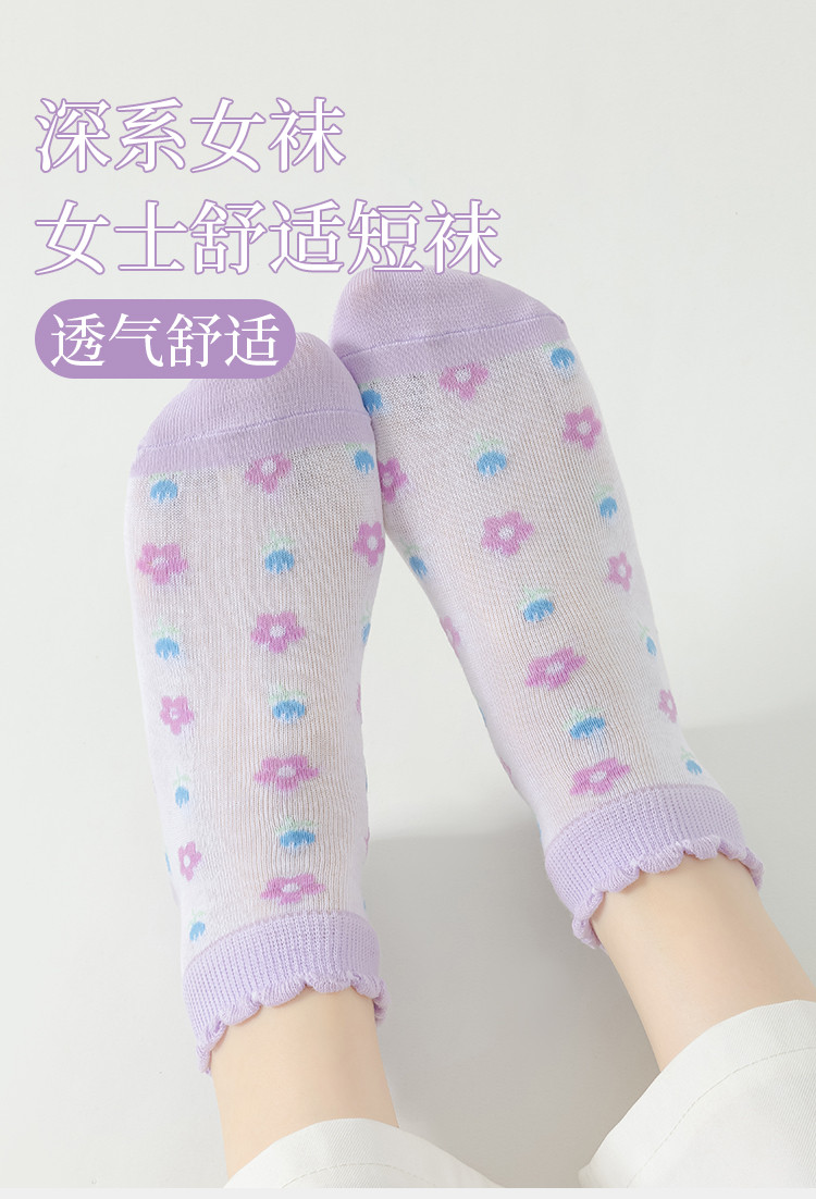 商品名称:【抑菌防臭】6双装女士袜子女春秋夏季薄款网眼透气时尚印花船袜 130123