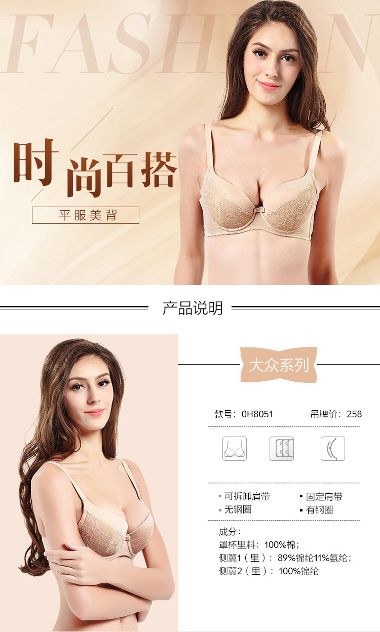 商品名称:【捡漏款】3/4LACE蕾丝花边牛奶丝面料加高肩侧收提拉罩杯 233803
