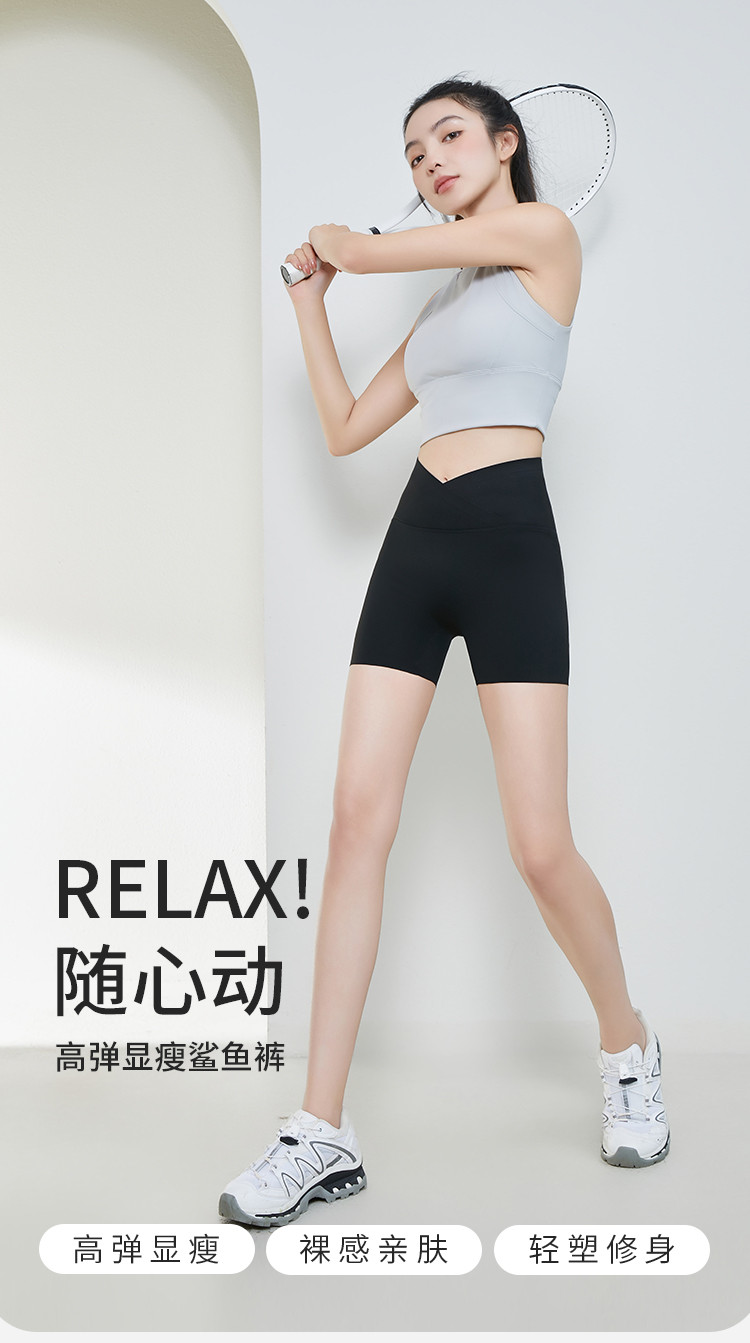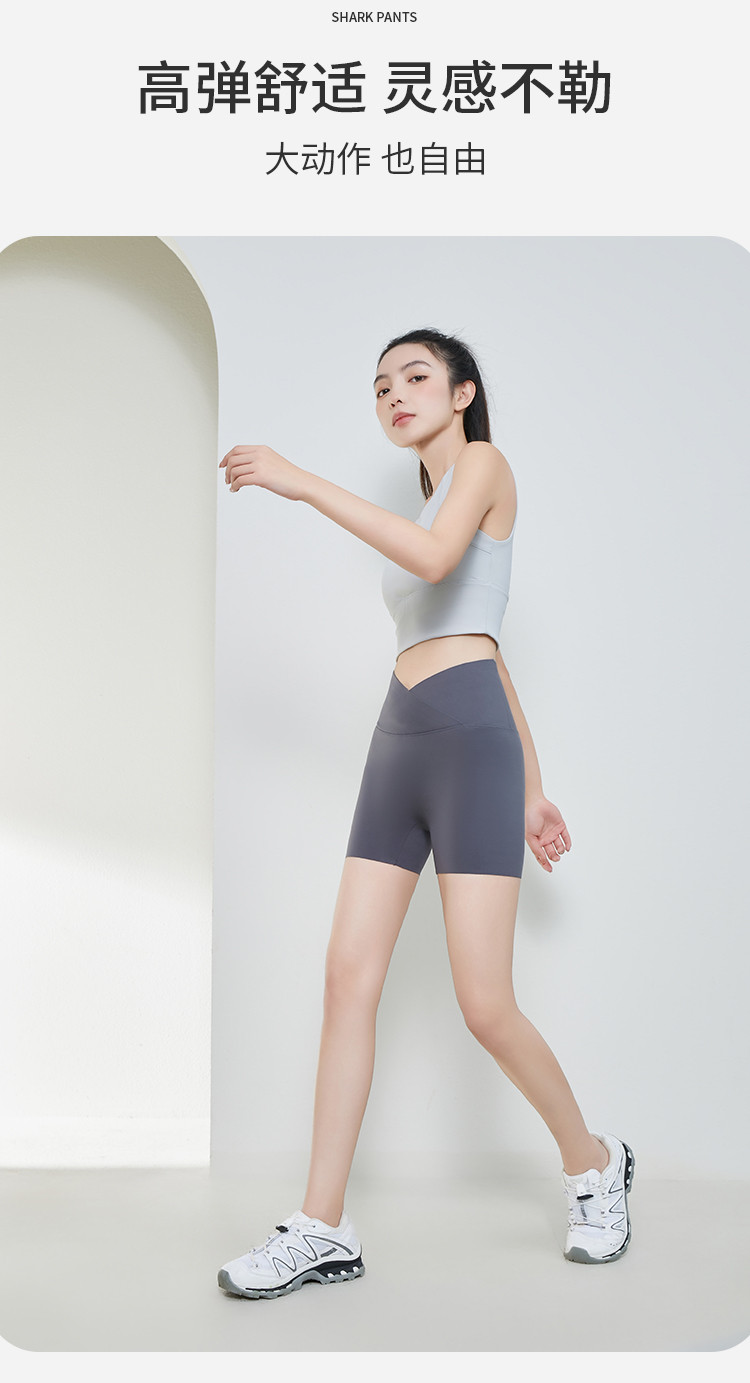 商品名称:【交叉腰】三分鲨鱼裤女可外穿冰丝骑行裤高腰防走光安全裤打底裤 805643