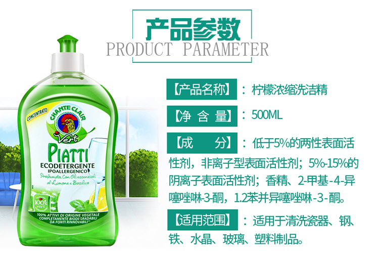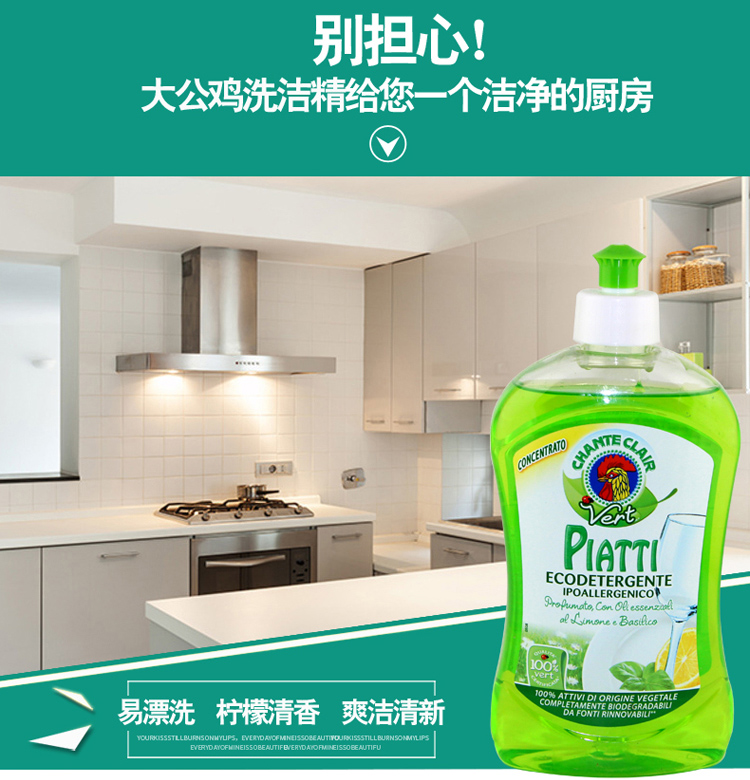 商品名称:大公鸡管家浓缩洗洁精(柠檬味)500ml*2瓶