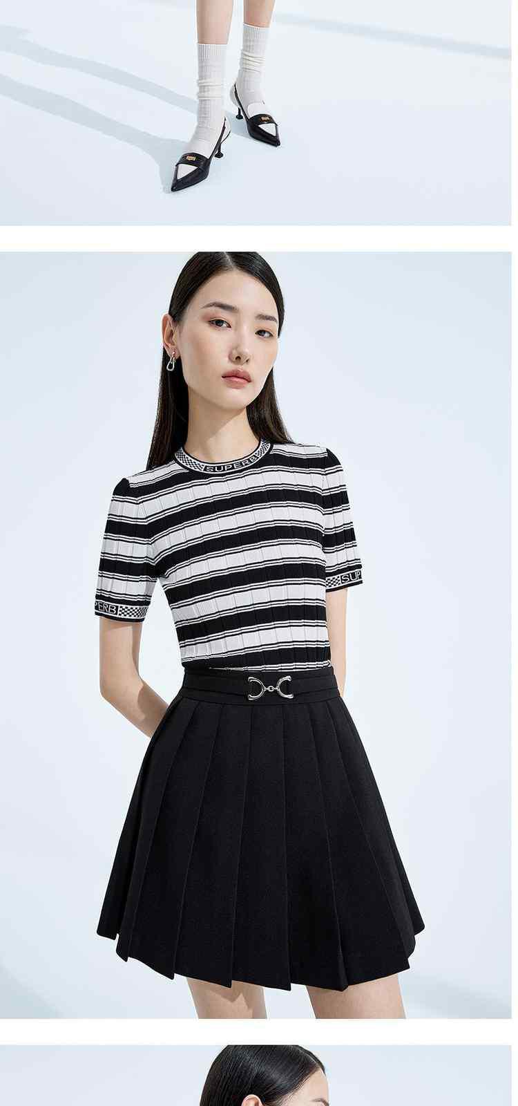 商品名称:黑标系列春装 字母条纹修身短款短袖针织衫女 335759