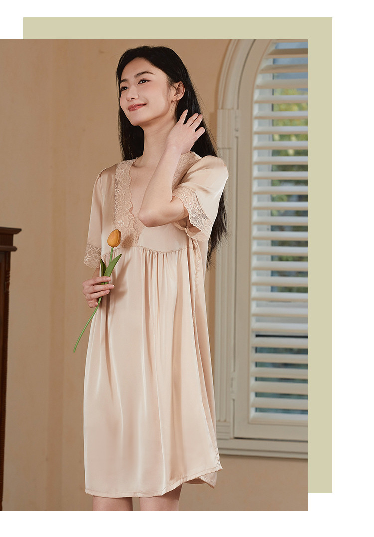 【冰雪丝】精致复古时尚优雅柔软触感女士睡裙细腻亲肤透气 458635