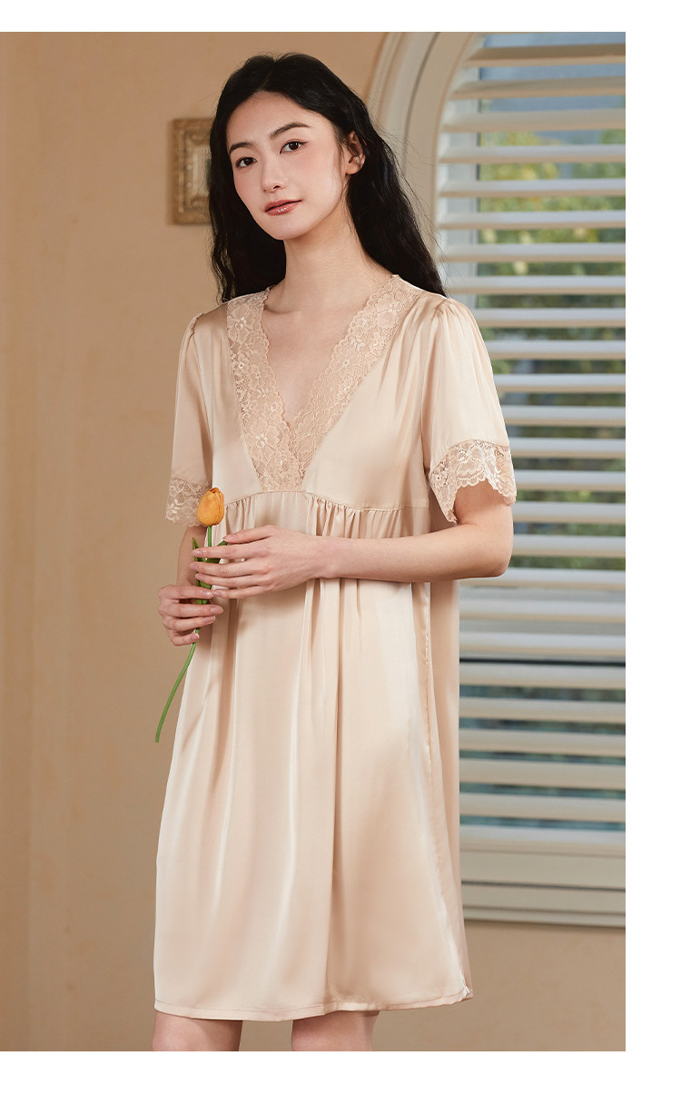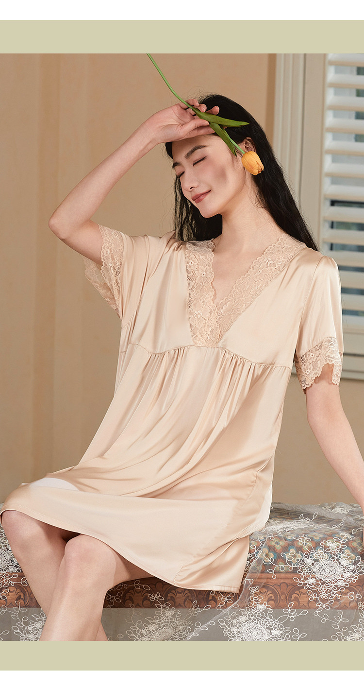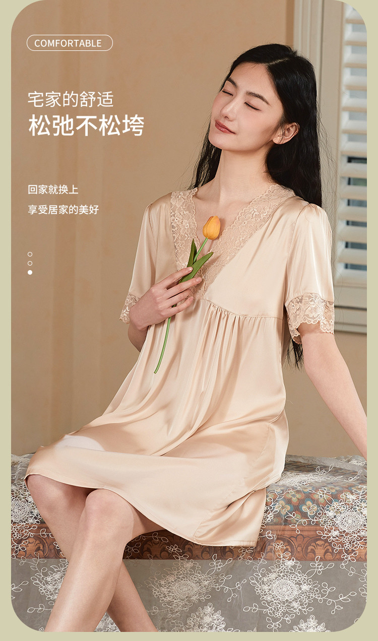 商品名称:【冰雪丝】精致复古时尚优雅柔软触感女士睡裙细腻亲肤透气 458635