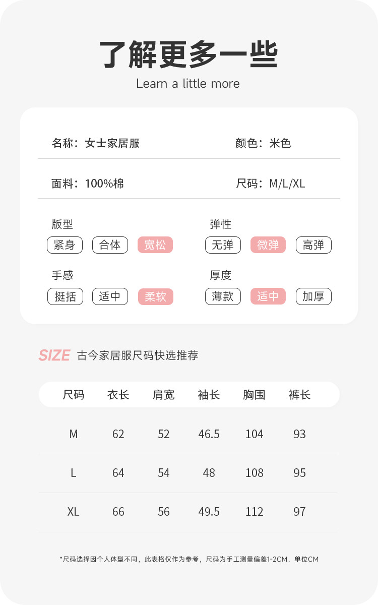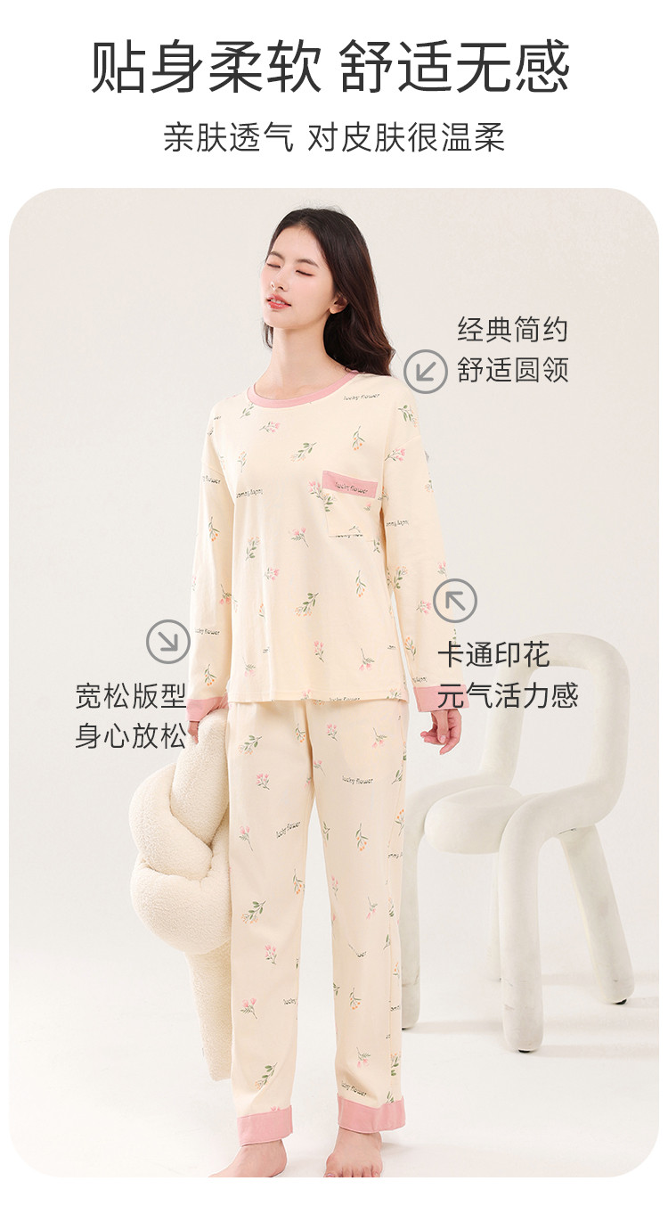 商品名称:【100%纯棉】女士碎花睡衣全棉家居服两件套可外穿休闲套装 296907