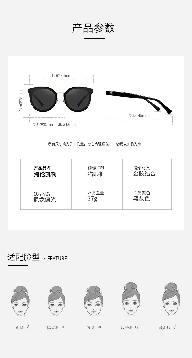 商品名称:海伦凯勒眼镜独特个性遮阳驾驶偏光墨镜女士太阳镜女 397467