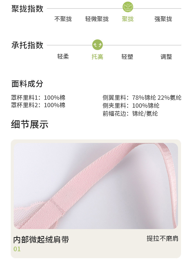 商品名称:【纯棉杯里】古今内衣文胸女大胸显小无钢圈拼棉杯蕾丝文胸罩 814155