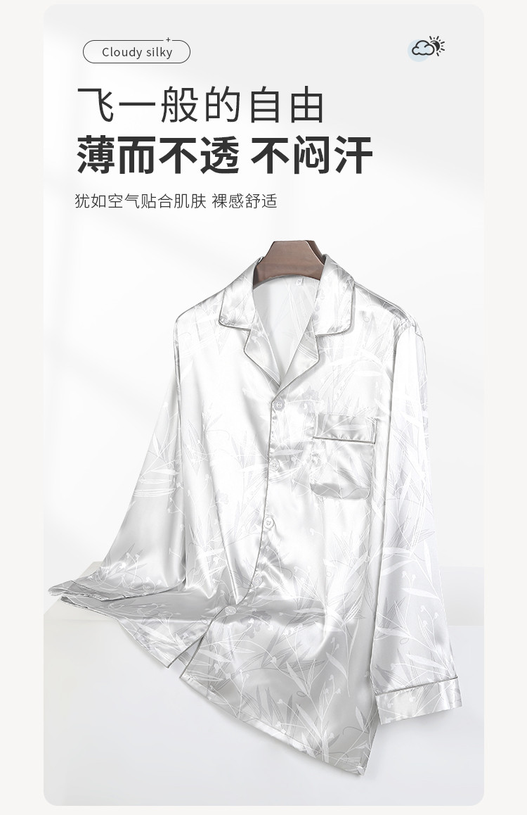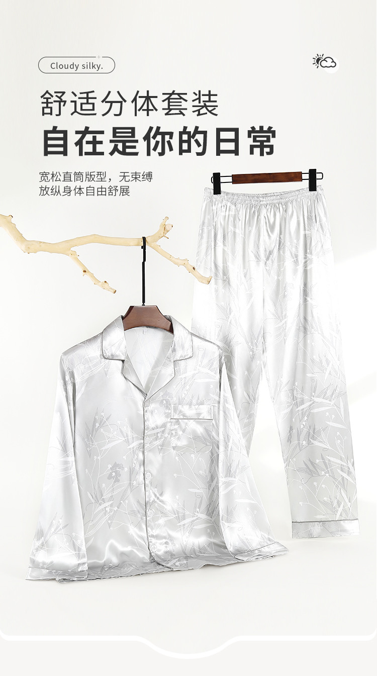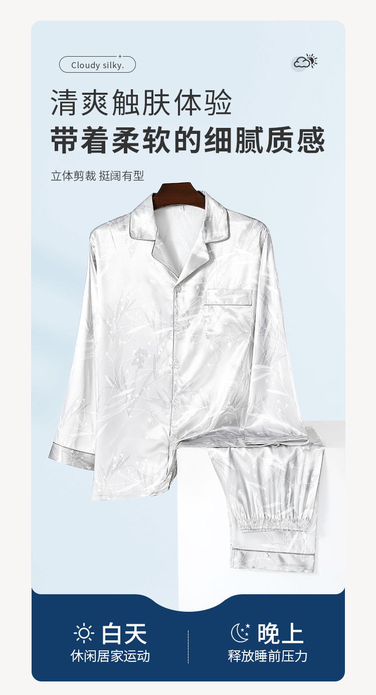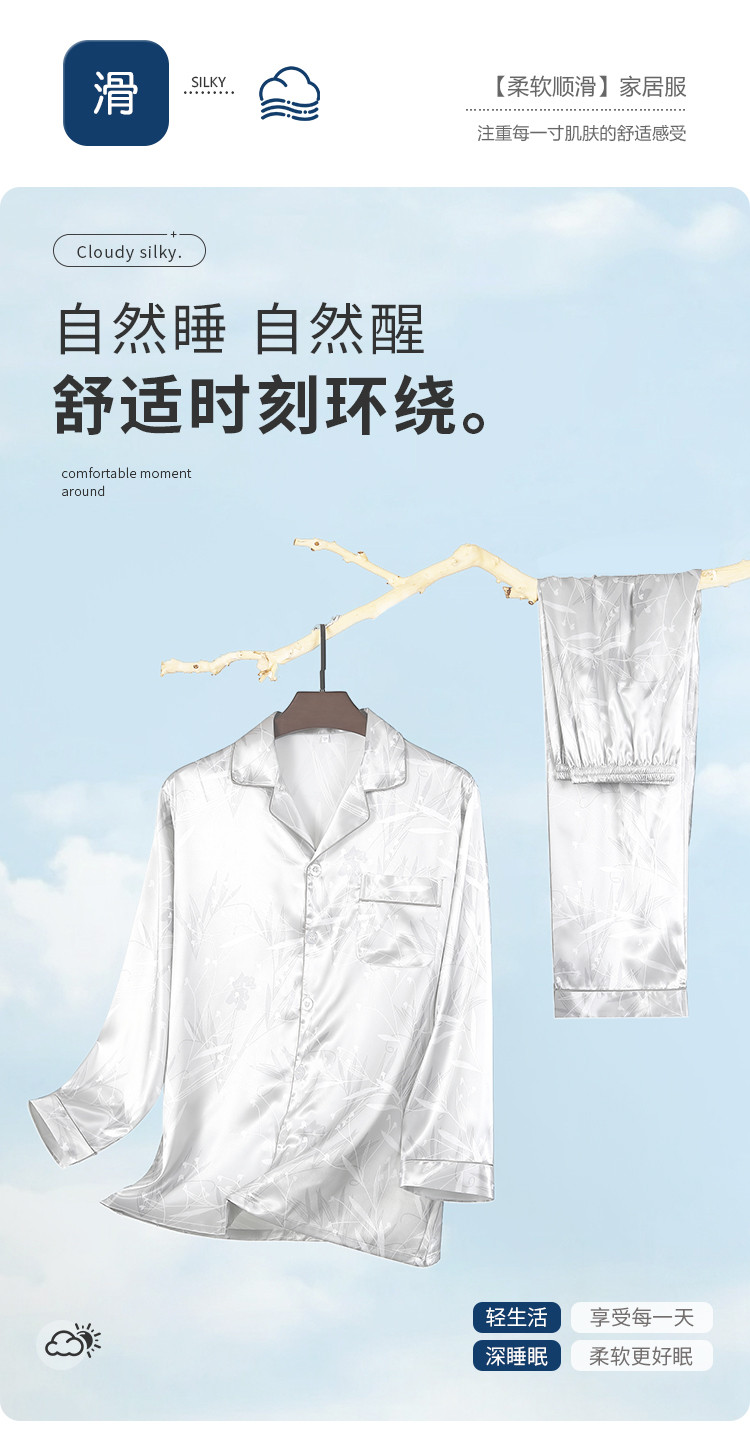 商品名称:【丝滑亲肤】男士春夏高级感冰丝睡衣长袖套装家居服薄男式居家服 152203