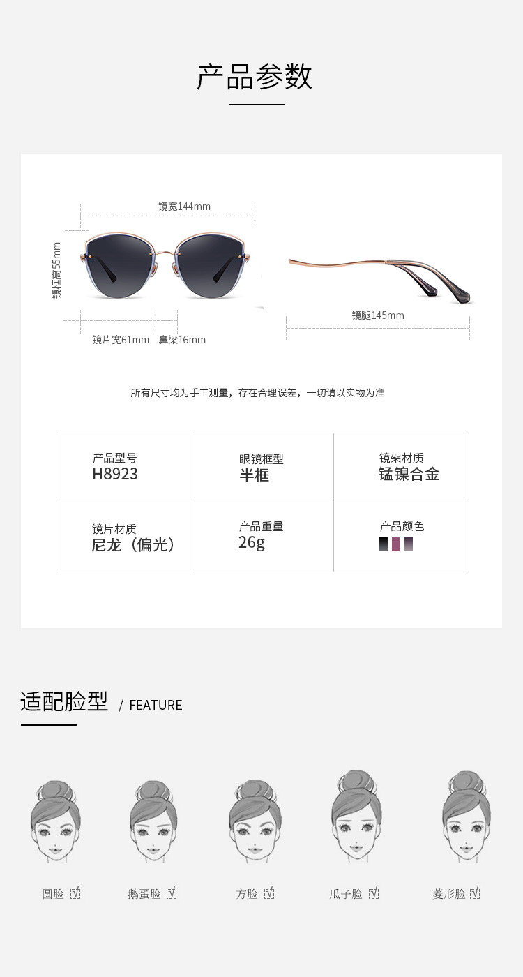 商品名称:海伦凯勒眼镜优雅猫耳墨镜女小脸女炫彩太阳镜 641243